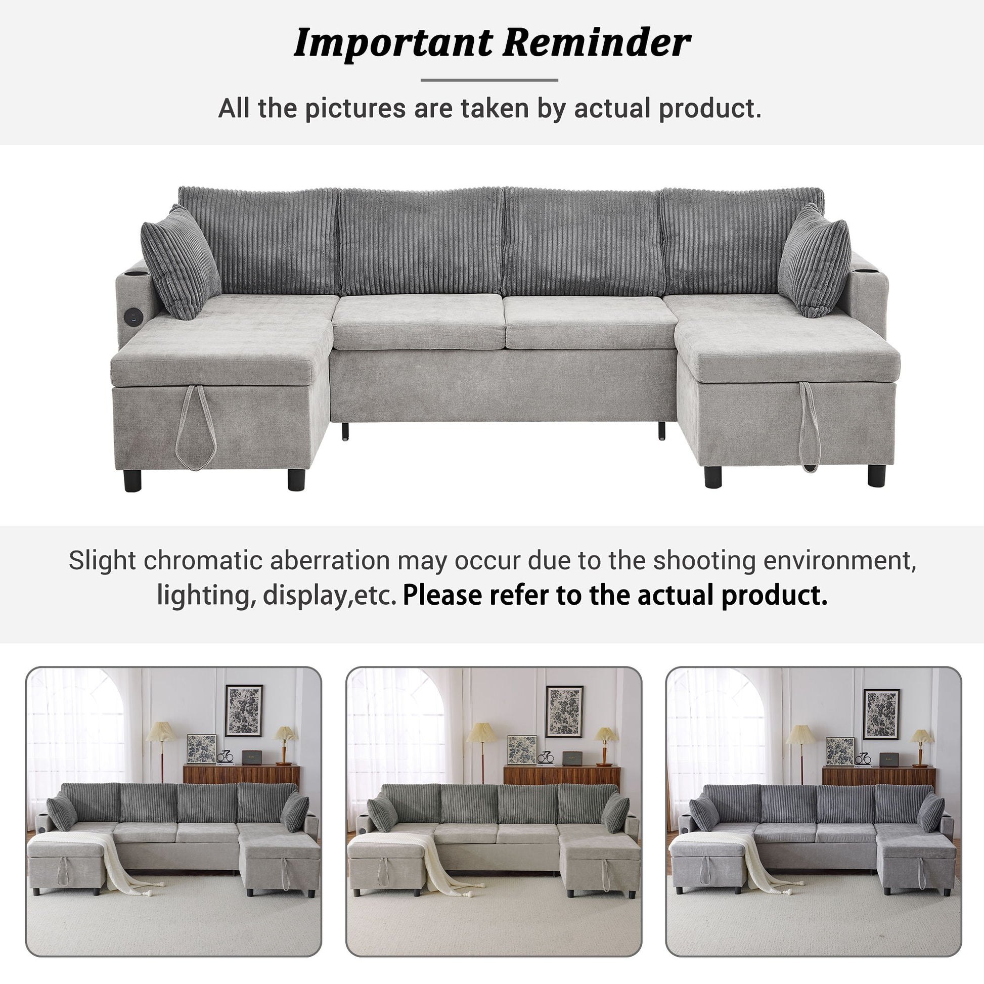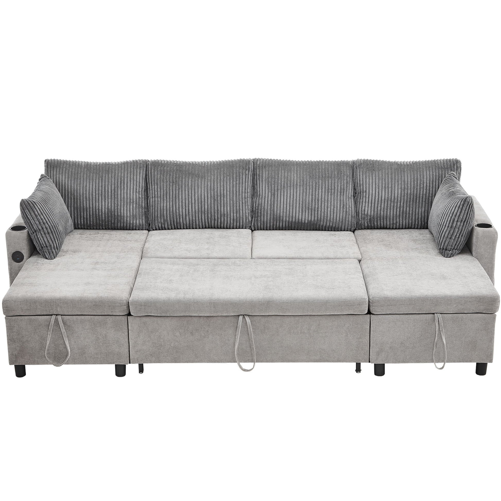 Sectional Sofa Pull Out Sofa Bed Versatile Sofa Sleeper With Large Storage Space, Two USB Ports And Two Cup Holders For Living Room - Gray