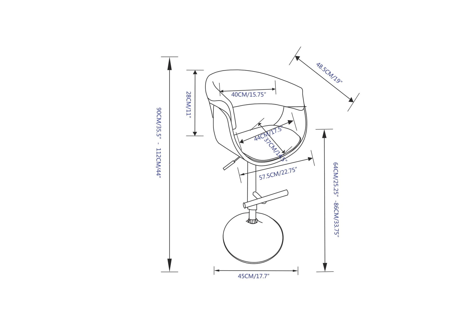 - Features sturdy polished chrome base with 360 degree swivel and footrest. Seat Adjusts from bar to counter height with gas lift