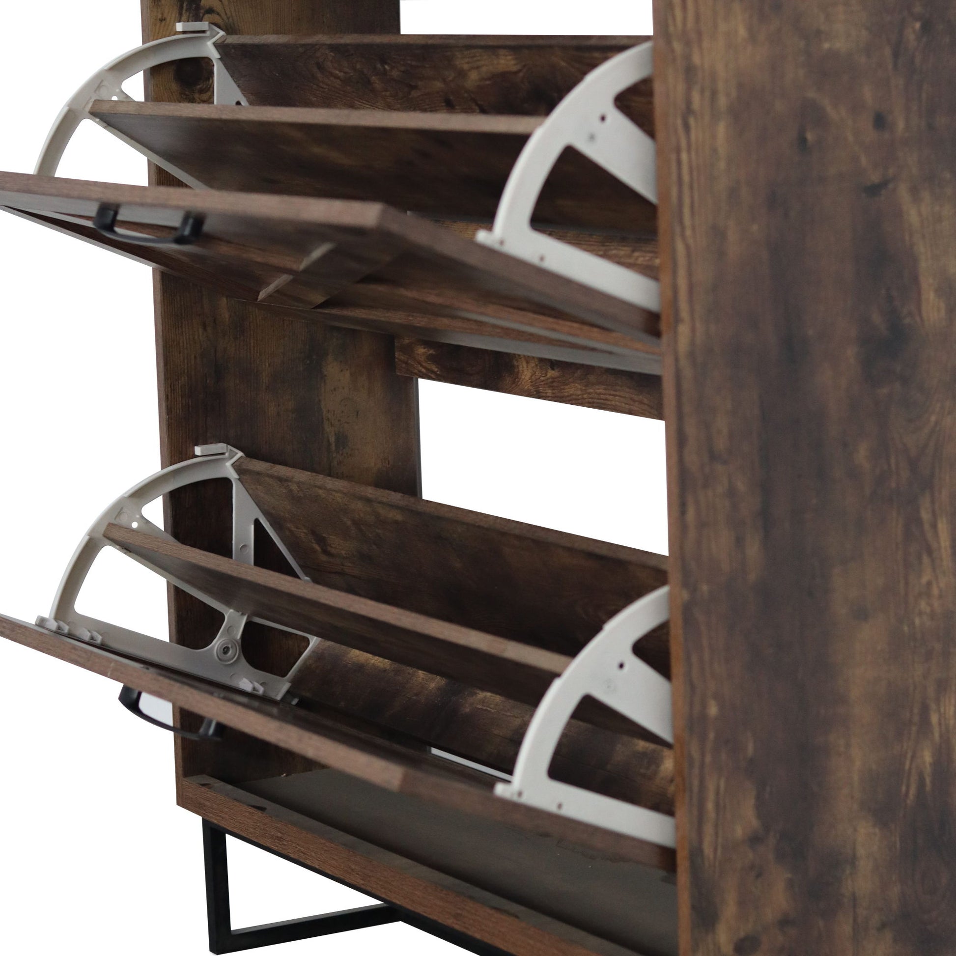 Shoe Storage Cabinet With 2 Flip Drawers, Freestanding Organizer With Metal Legs For Entryway, Narrow Shoe Rack Cabinet - Rustic Brown