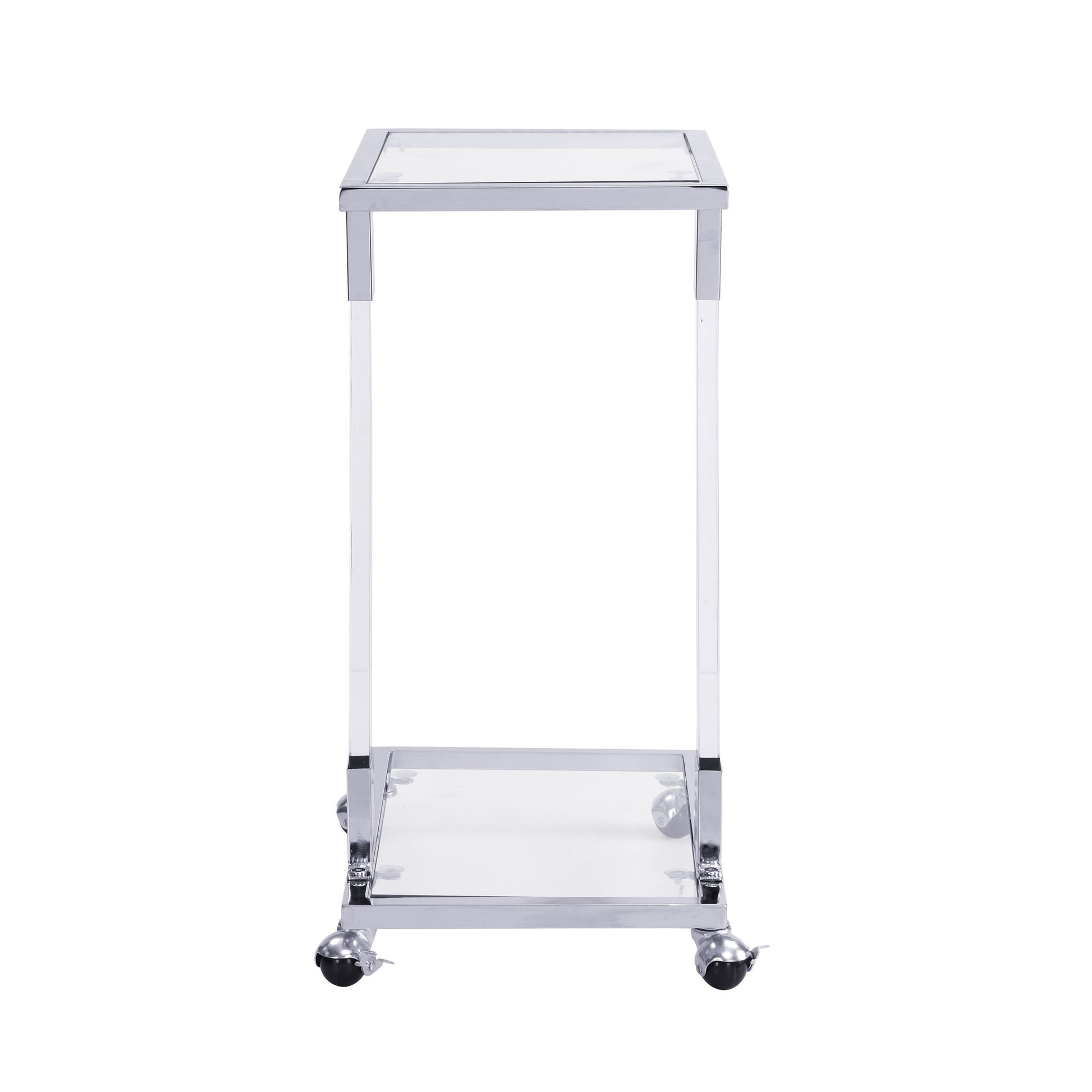 Glass Side Table, Acrylic End Table, Glass Top C Shape Square Table With Metal Base For Living Room, Bedroom, Balcony Home And Office - Chrome