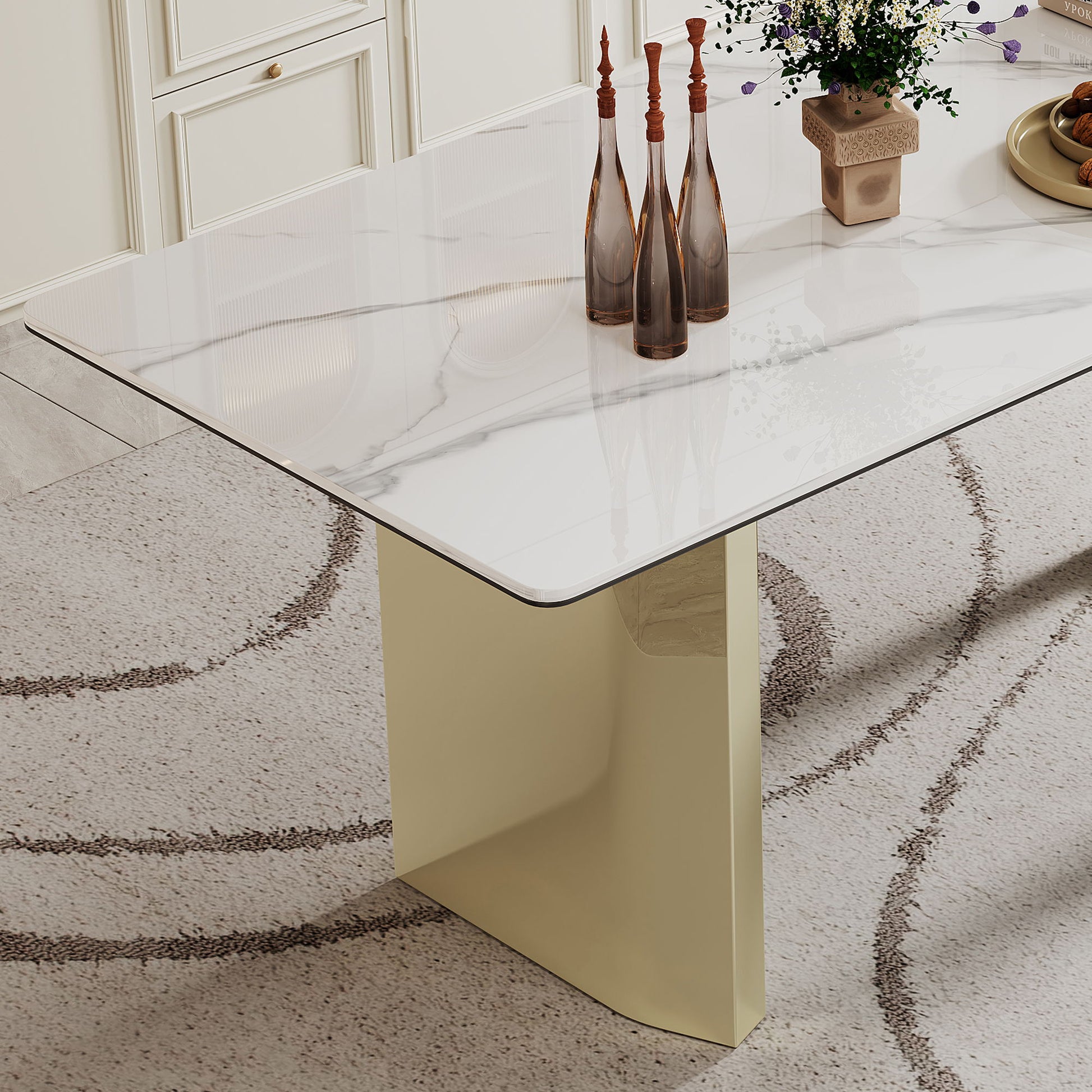 Thick Sintered Stone Composite Tempered Glass Top Rectangular Dining Table With Stainless Steel Base - Gold