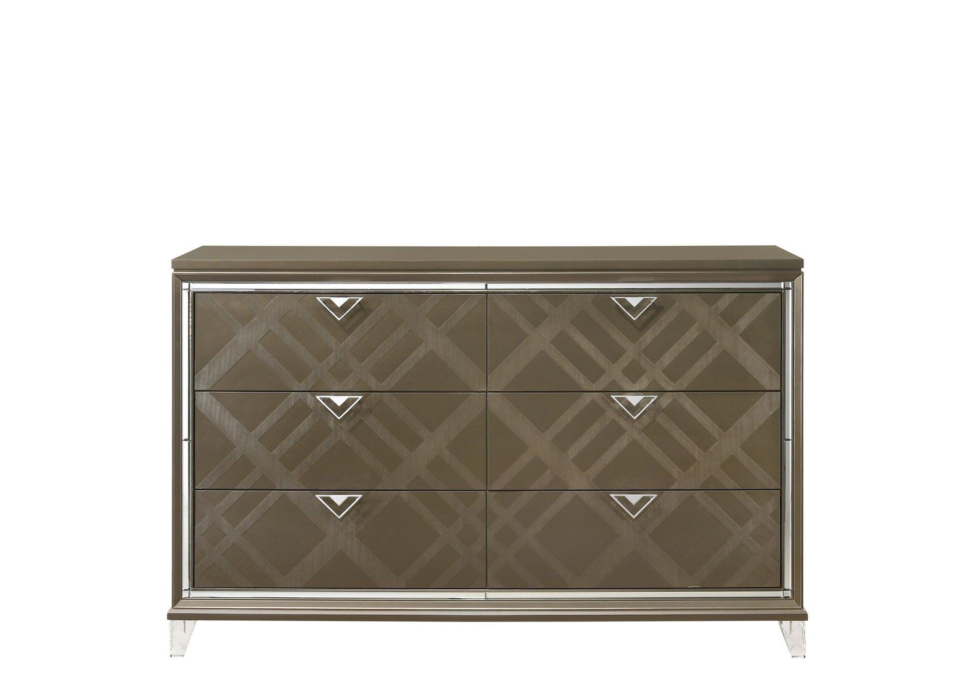- Elegant Design: This 6-drawer dresser showcases a blend of timeless elegance and modern sophistication, featuring beautifully embossed drawer fronts that add texture and visual appeal.