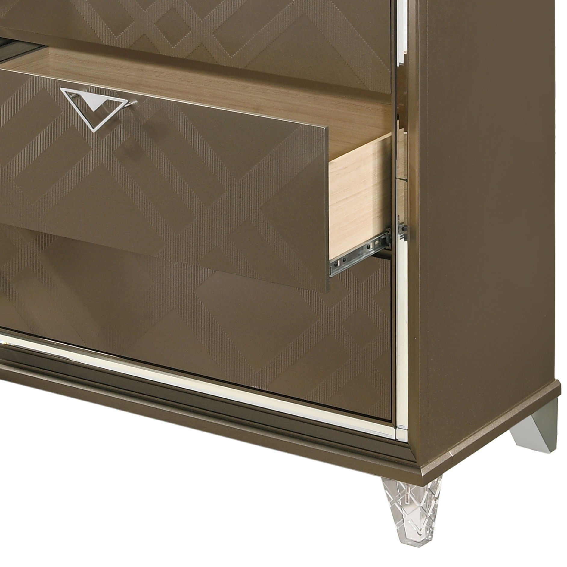 - Quality Materials: Made from rubberwood, MDF, and PB, the dresser includes mirrored beveled trim for added glamour, supported by sleek acrylic tapered legs for contemporary style.