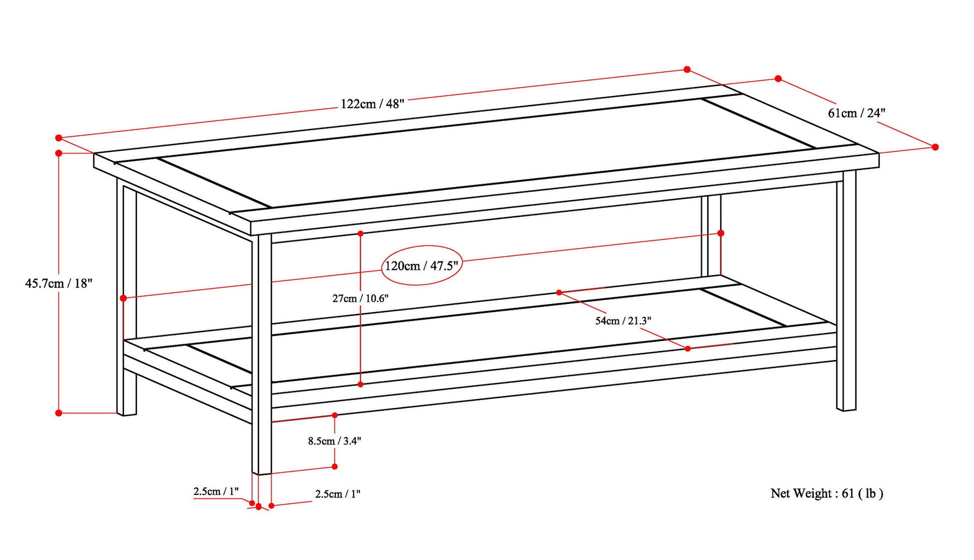 48.0"W x 24.0"D x 18.0"H - 60.0 lb