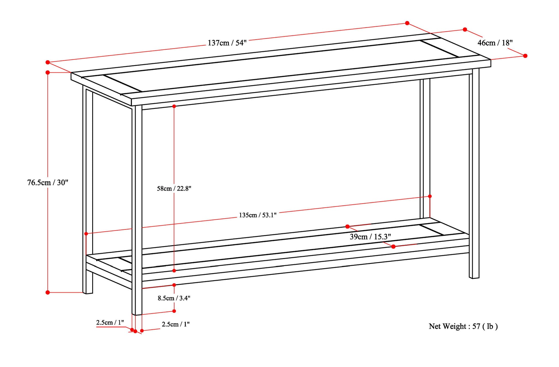 54.0"W x 18.0"D x 30.0"H - 57.3 lb