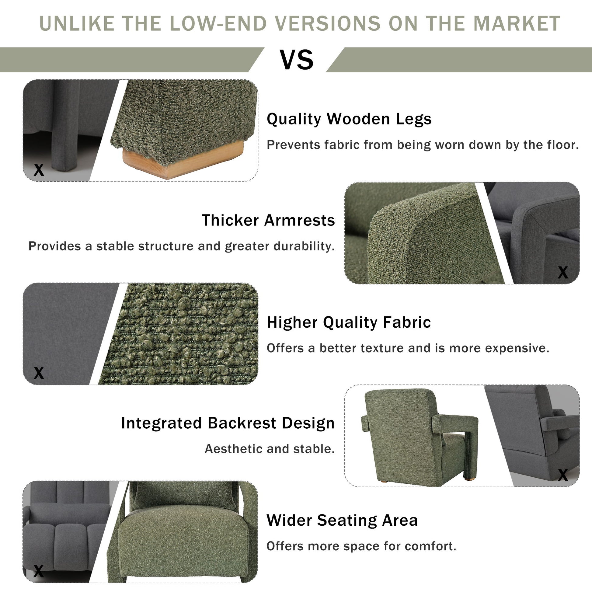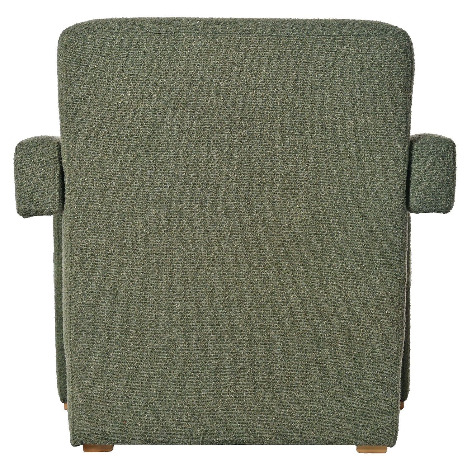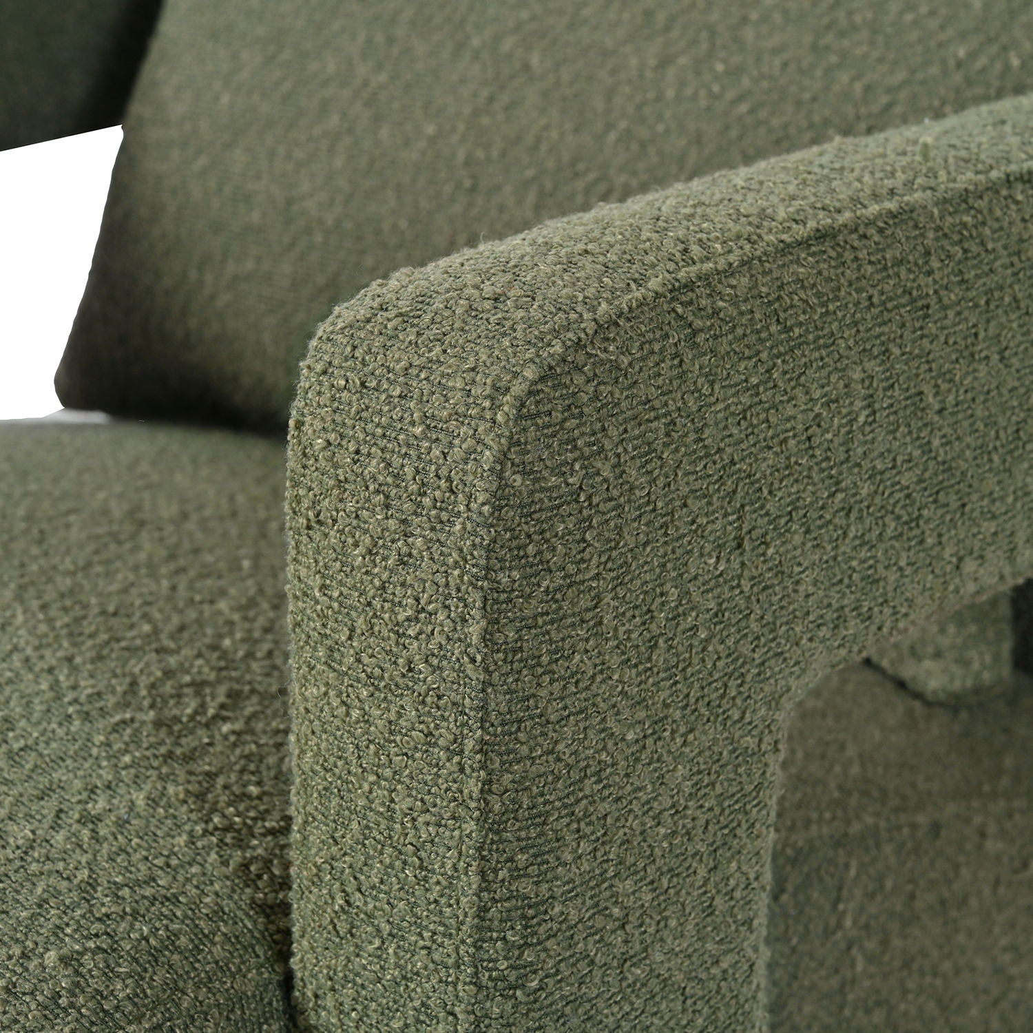 Sleek Right Angle Armrests, Ergonomic Lumbar Support, Square Wooden Block Legs, Inclined Seat For Comfort, Artistic Statement Piece For Living Room, Bedroom And Study - Green