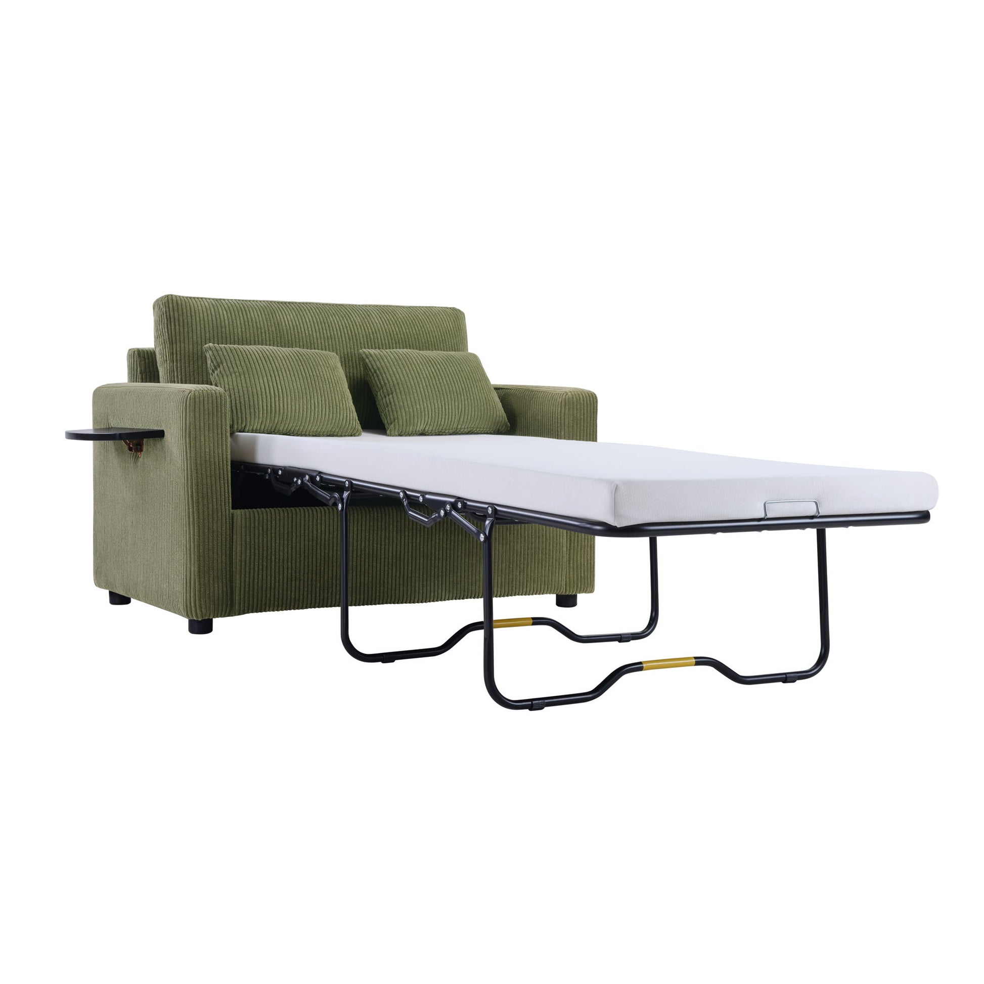 Twin Size Sofa Bed Sleeper Sofa Loveseat With Foldable Mattress, Side Table, USB Ports - Green