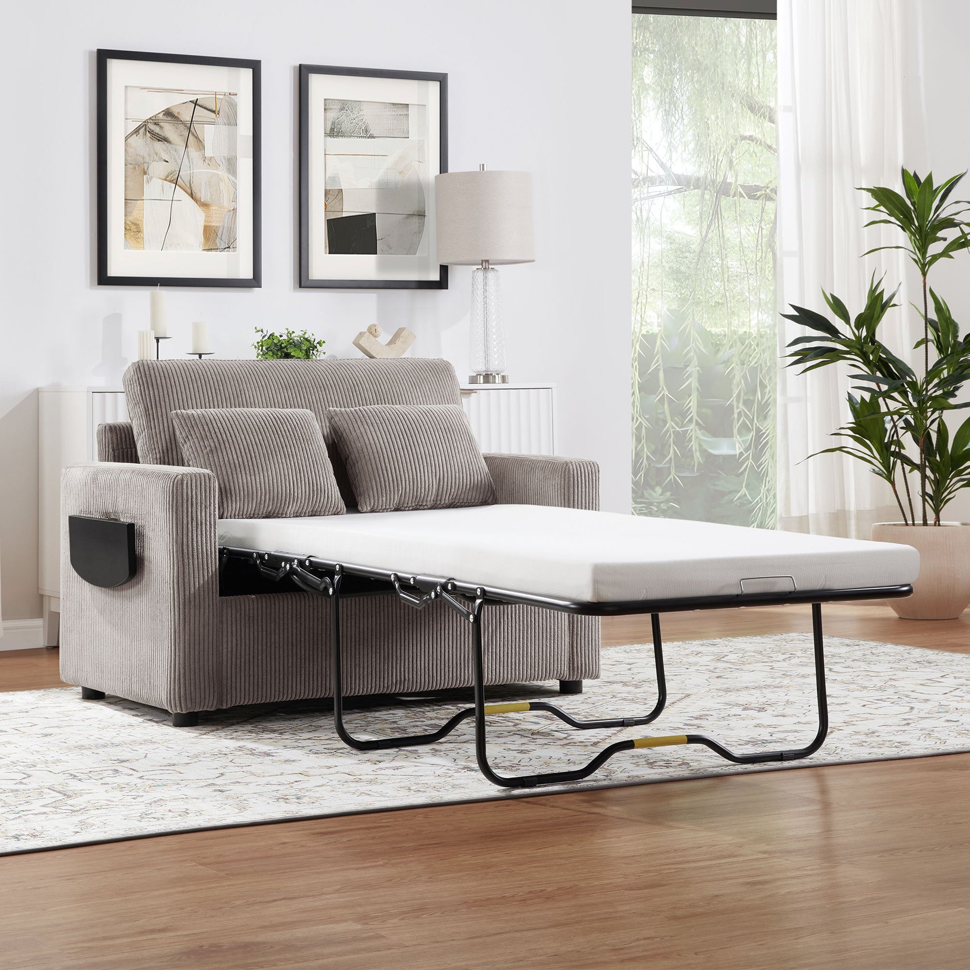 Twin Size Sofa Bed Sleeper Sofa Loveseat With Foldable Mattress, Side Table, Storage Pocket & USB Ports - Gray Brown