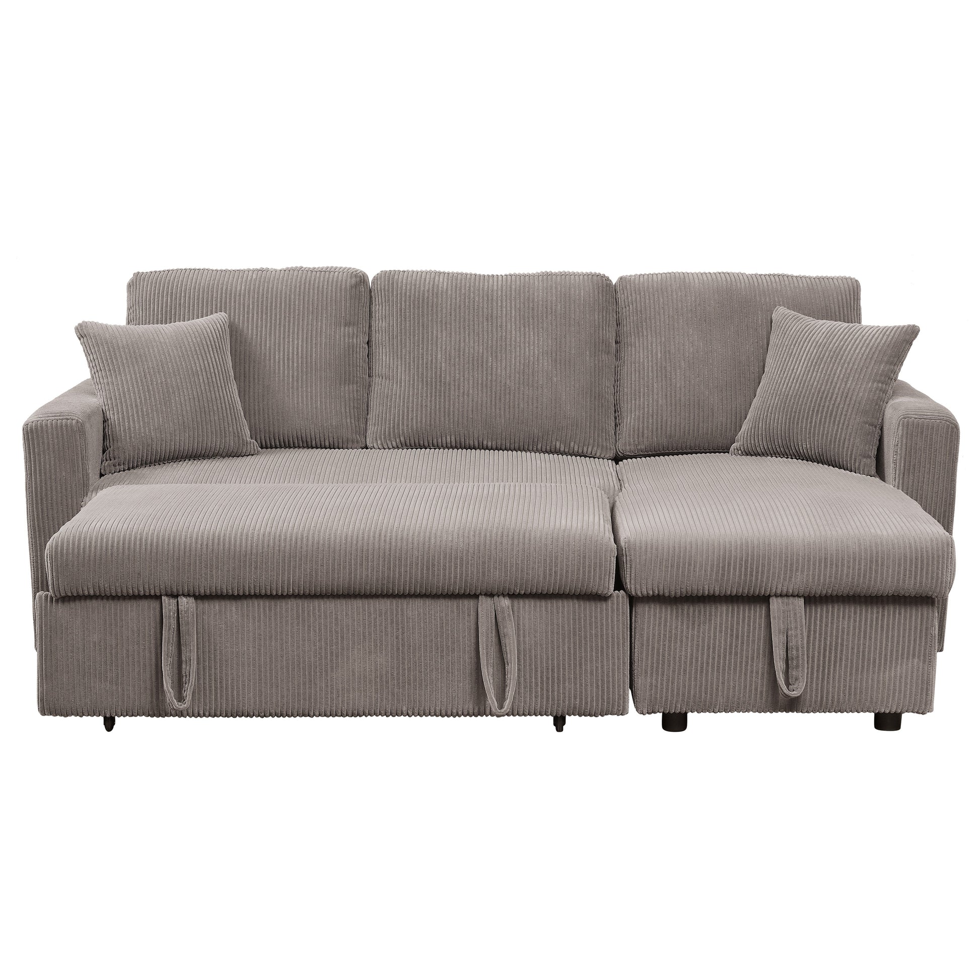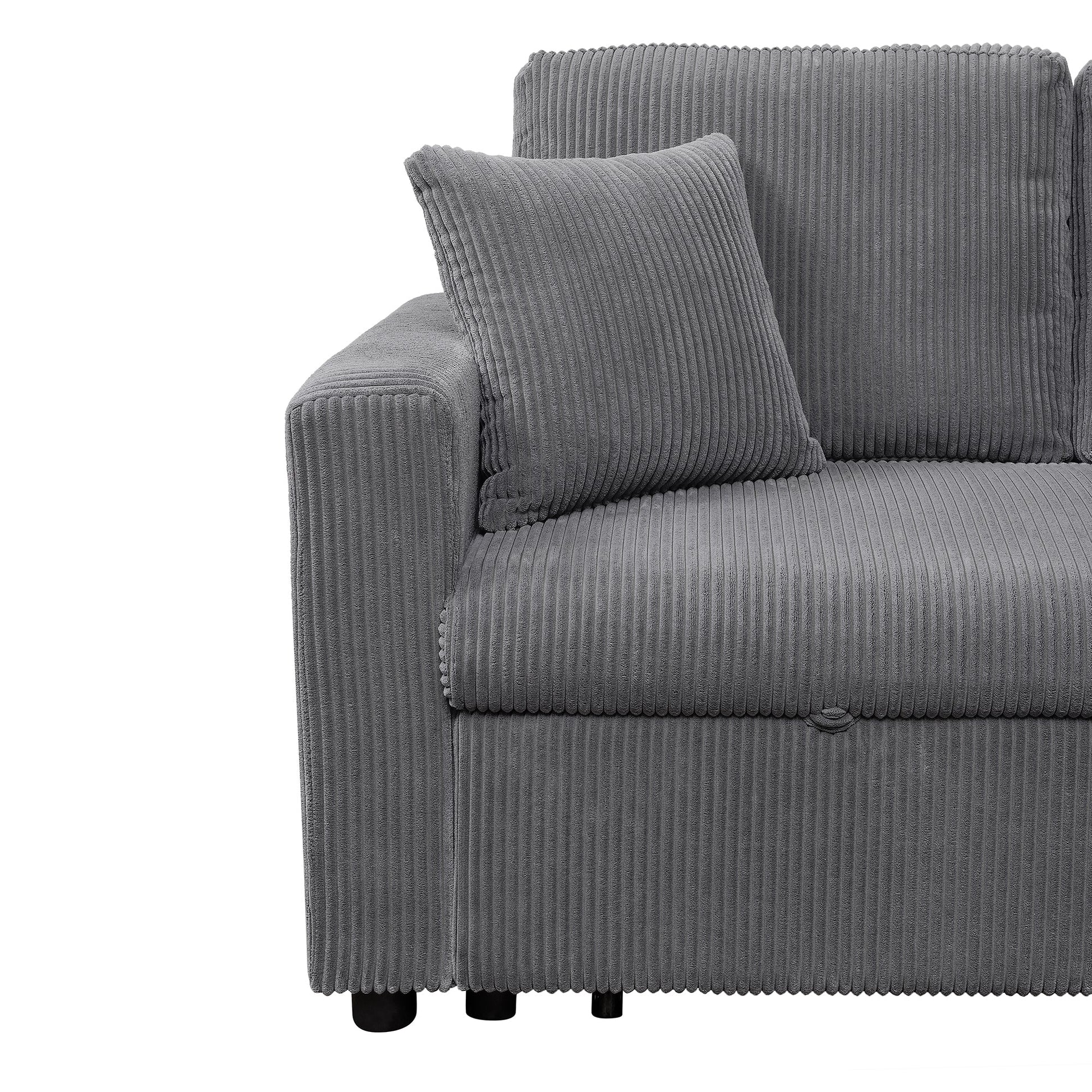 Upgrade your living space with the White/Grey Corduroy Fabric Storage Chaise. Crafted from durable materials like MDF, foam, eucalyptus wood, and metal, this chaise offers both comfort and functionality. The luxurious corduroy fabric in classic white and grey easily complements any decor. Featuring a large storage compartment, it’s perfect for keeping your space organized. The chaise is versatile, allowing you to position it on either side of your room, and the pull-out section is equipped with wheels for easy mobility.