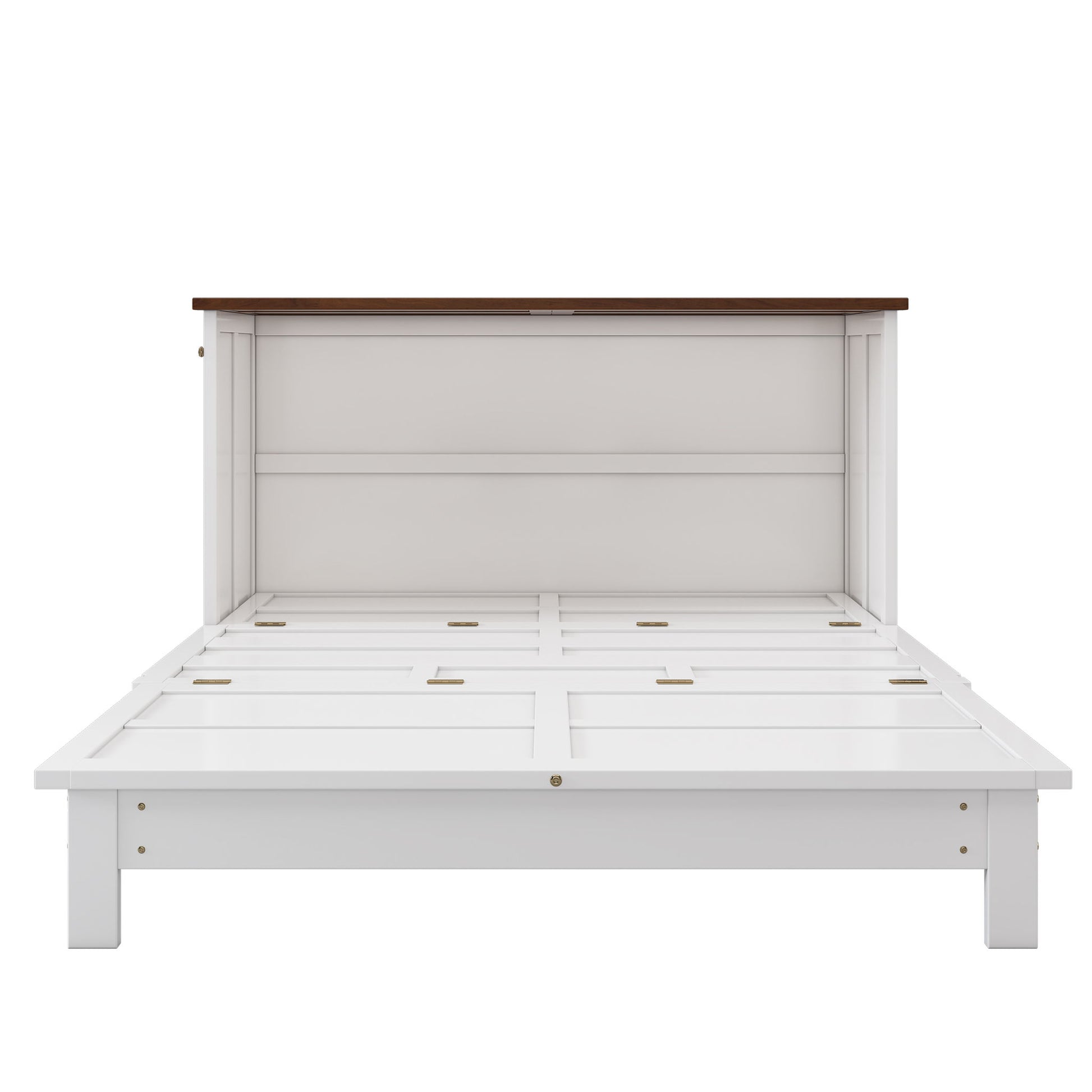 Queen Solid Pine Murphy Bed Chest With Charging Station And Large Storage Drawer For Home Office Or Small Room - White / Walnut