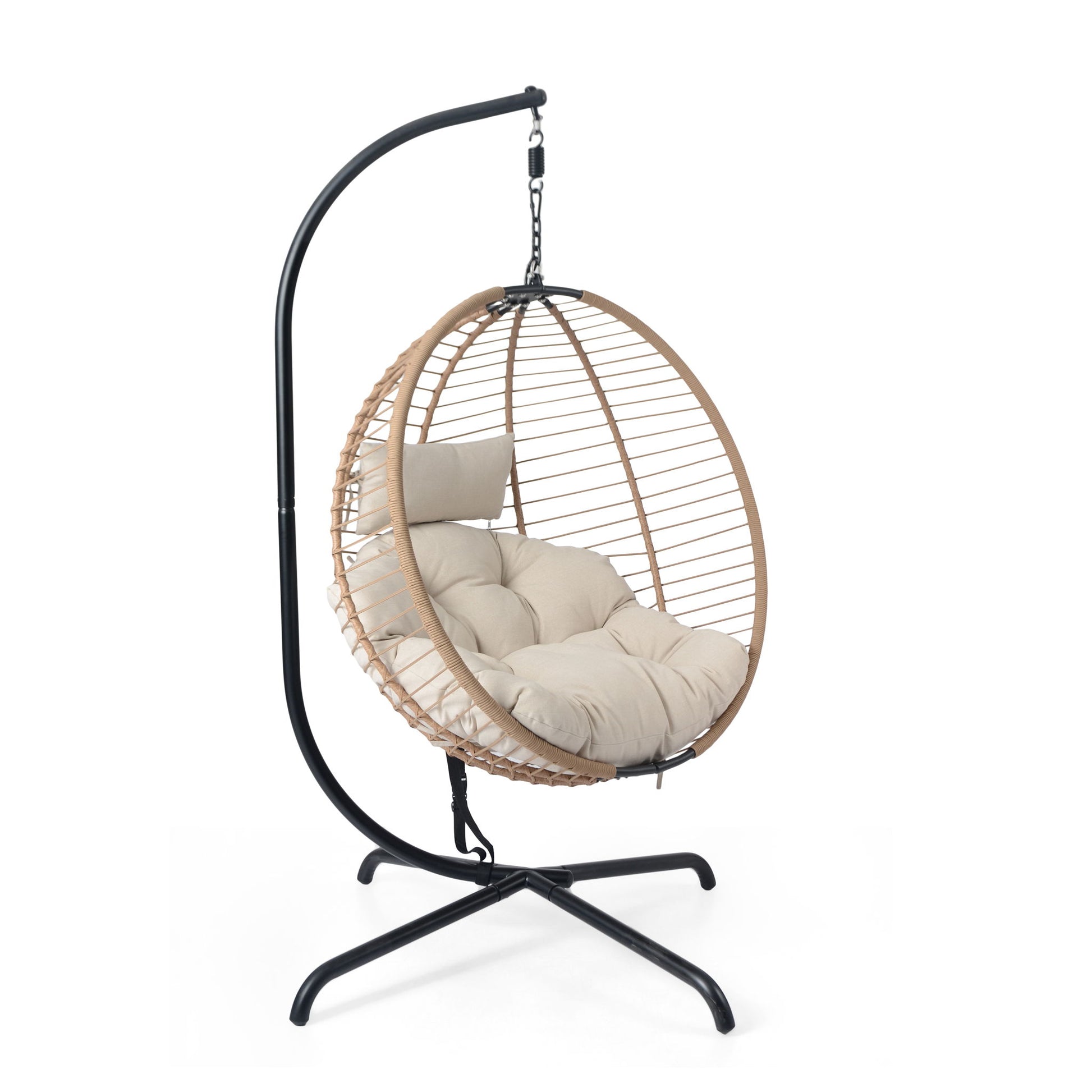 Sora - Outdoor Patio Wicker Hanging Chair With Stand - Beige / Brown