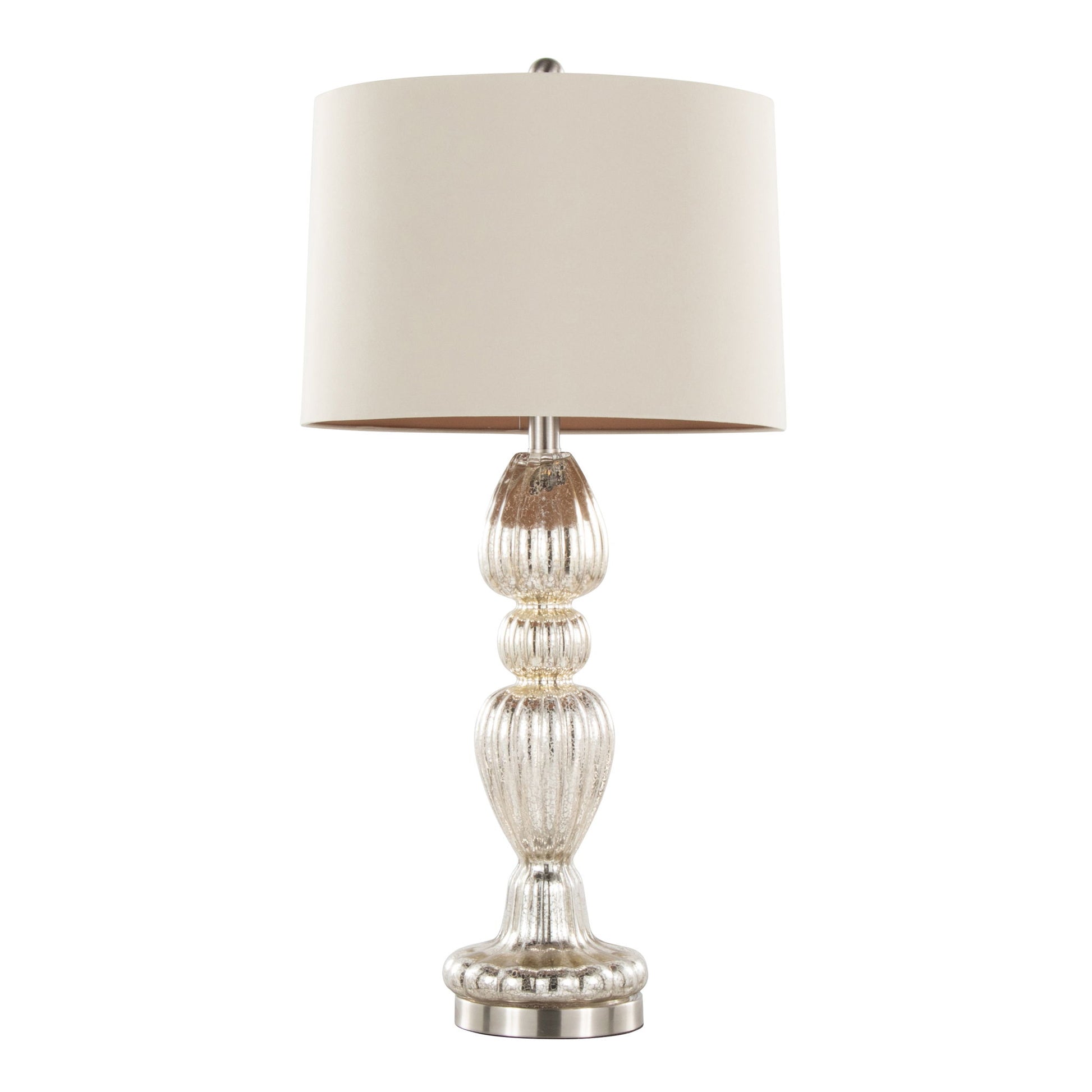 - Elegant Design: The Spade Table Lamp features a captivating mercury glass construction with sleek metal accents, complemented by a minimalistic drum shade, offering a chic and contemporary styling to any room.
