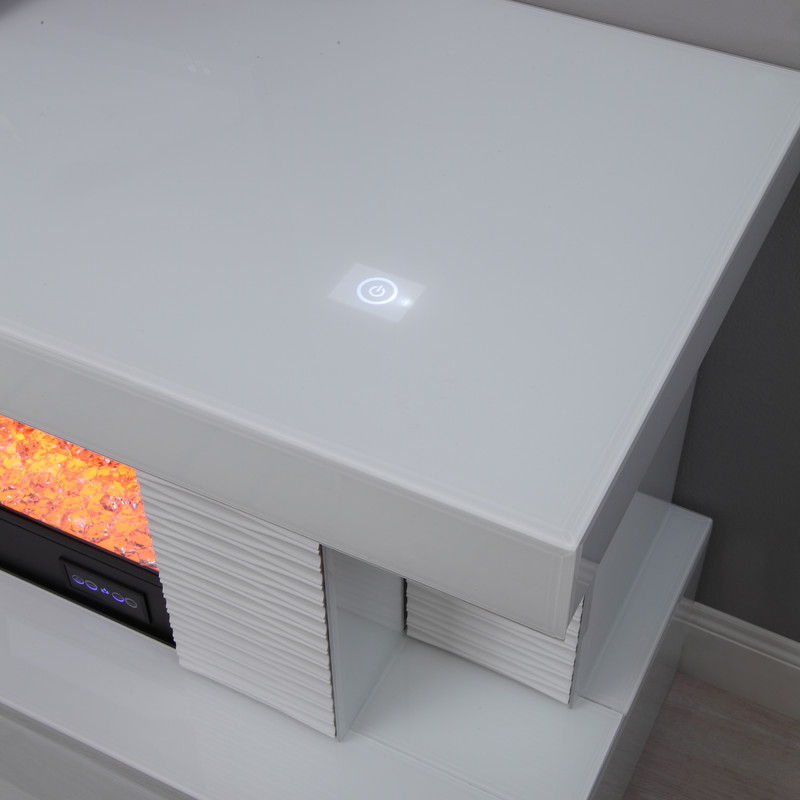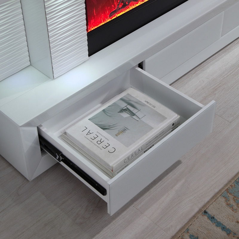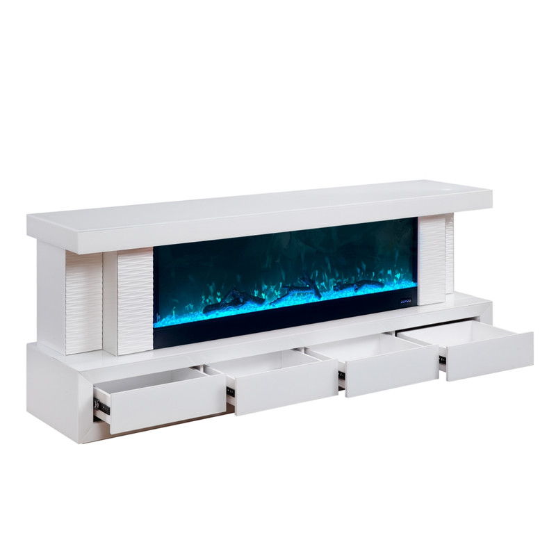 Spencer 71"W White Finish TV Stand with Fireplace and Speaker