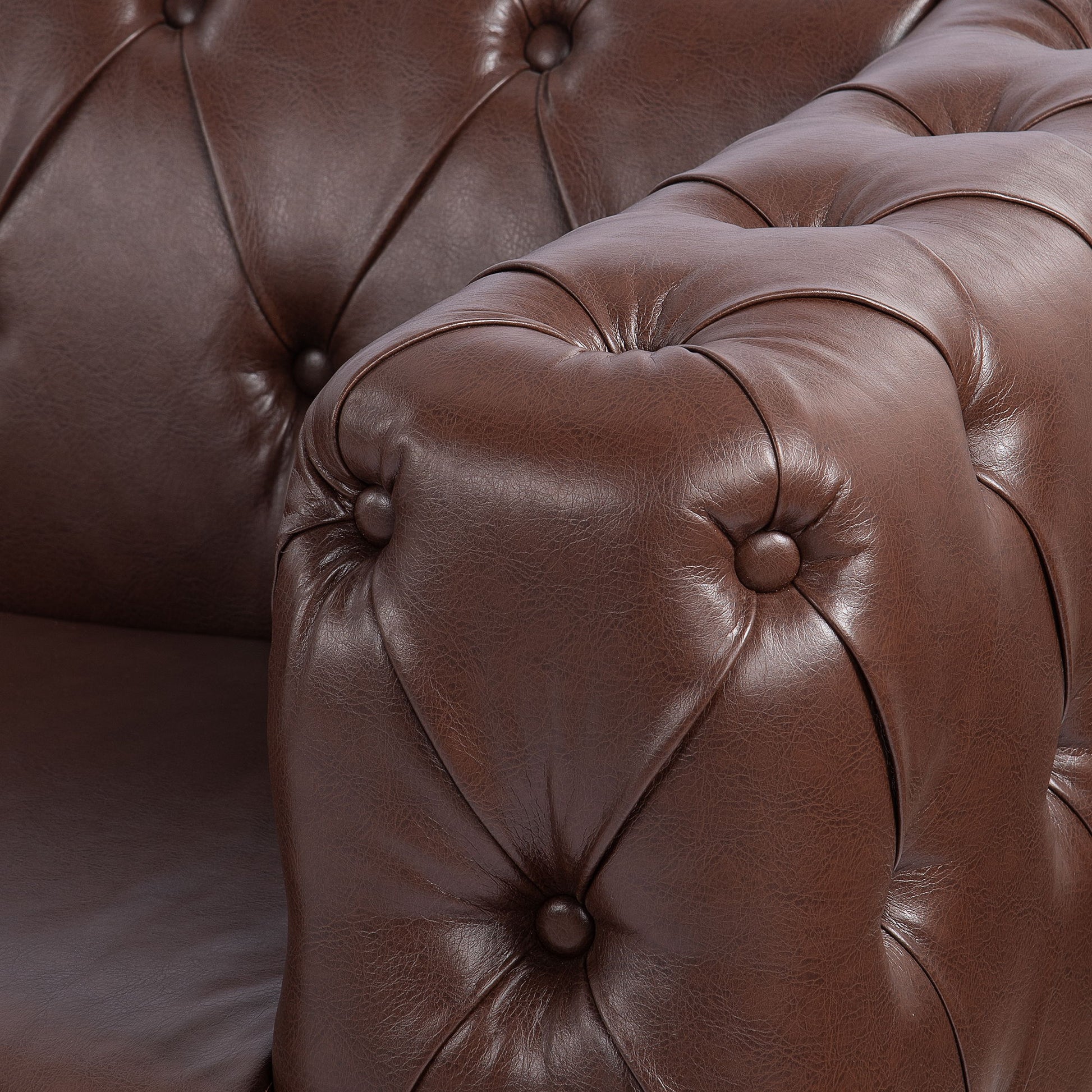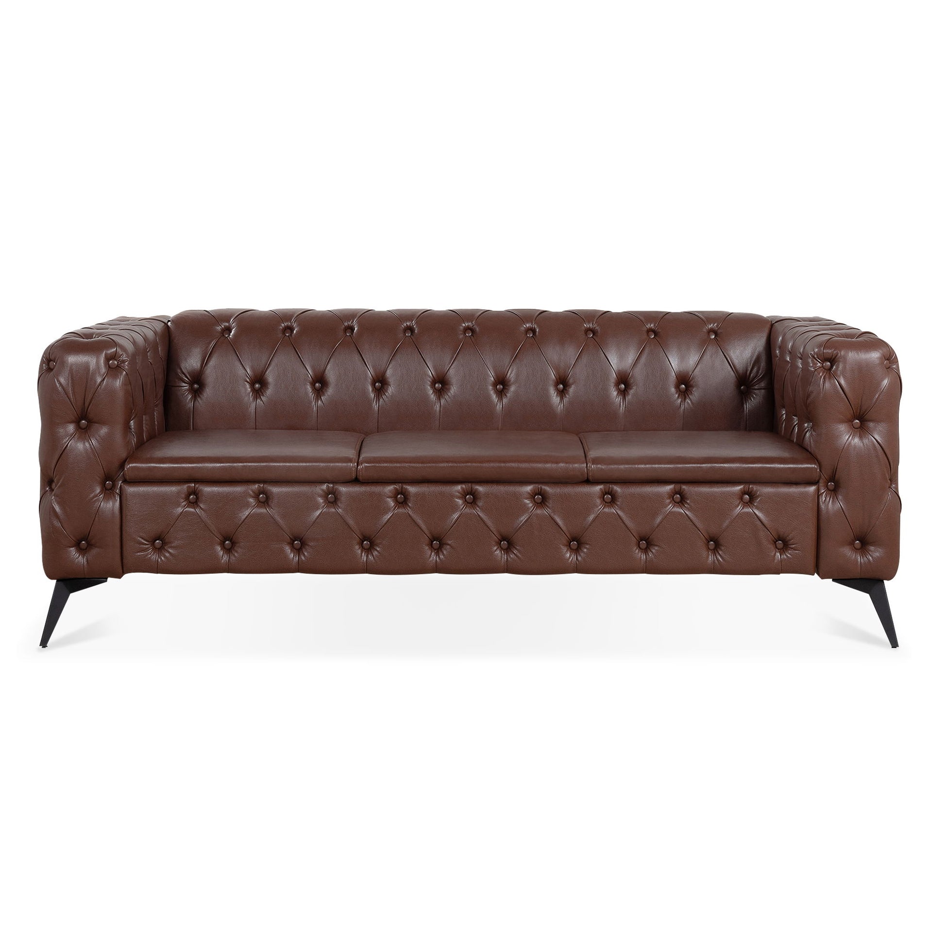 84.06" Width Traditional Square Arm Removable Cushion 3 Seater Sofa - Dark Brown