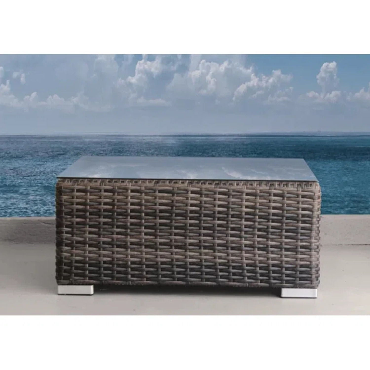 Square Coffee Table With Rustproof Frame And Clear Top - Brown Mix