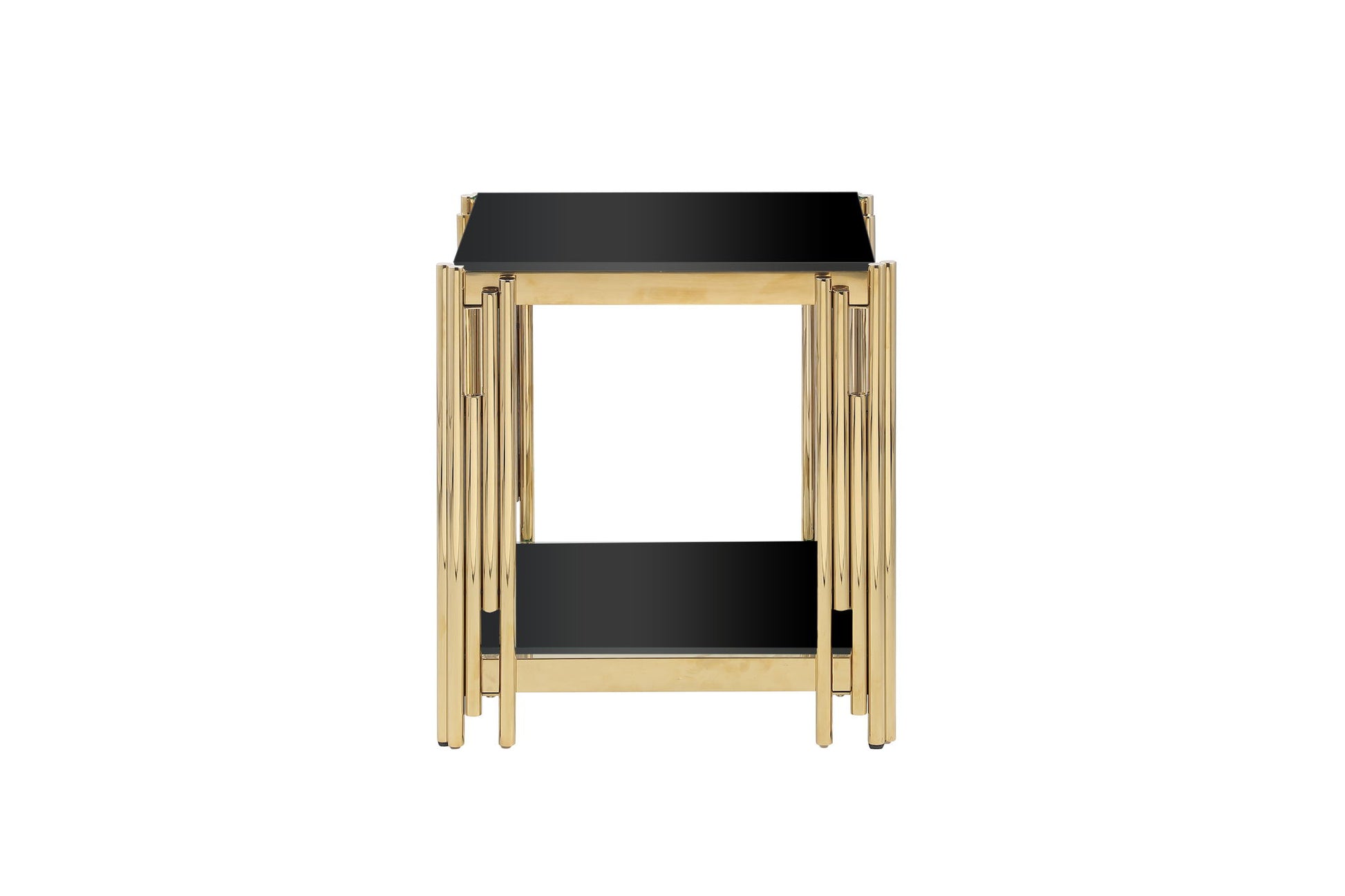 Square End Table With Tempered Glass Top For Living Room - Black / Gold
