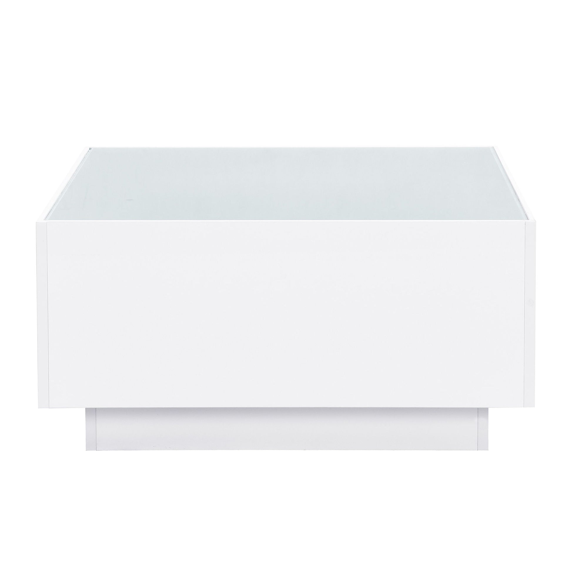 Square High Glossy Coffee Table With 16 Color Led Strip Lights, Modern Center Table With 5Mm Frosted Tempered Glass Top For Living Room - White