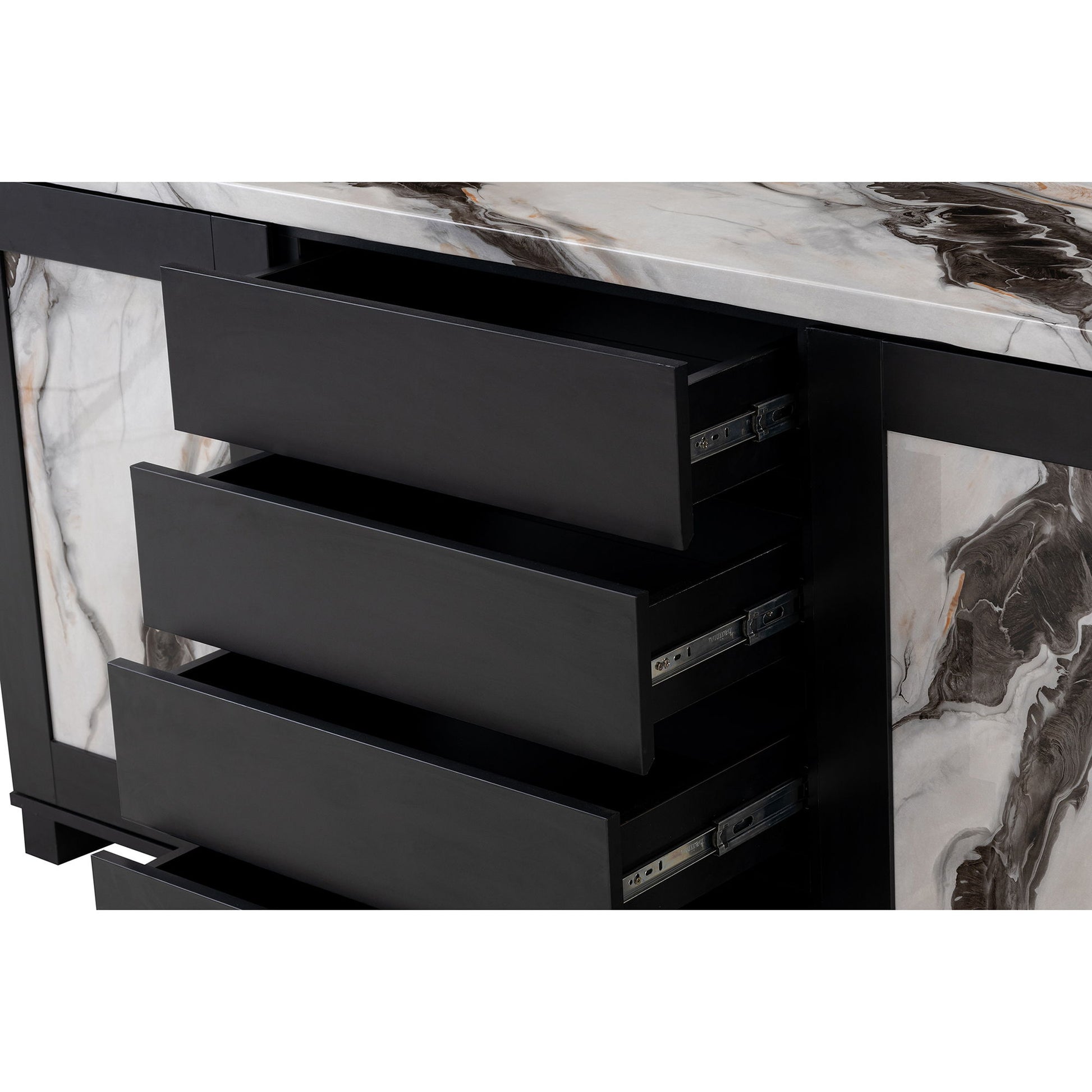 Stacey - Buffet With Storage Drawers And Marble Detailing - Black / Marble