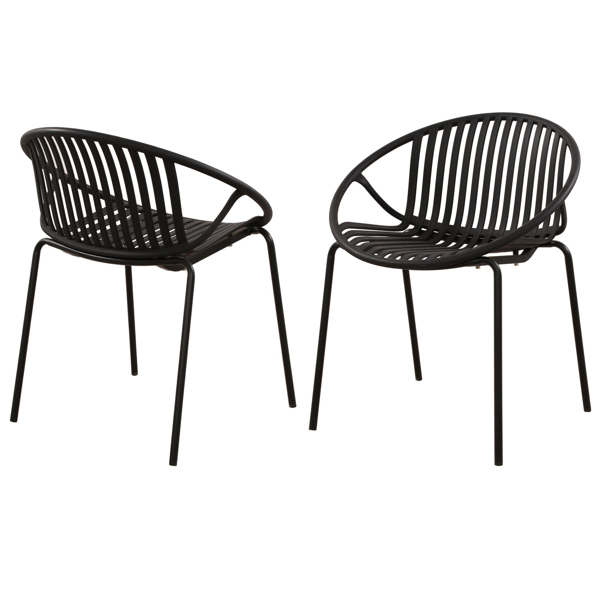 Modern Simple Art Style Patio Dining Chairs With Breathable Design, Metal Legs And Plastic Backrest (Set of 2) - Black