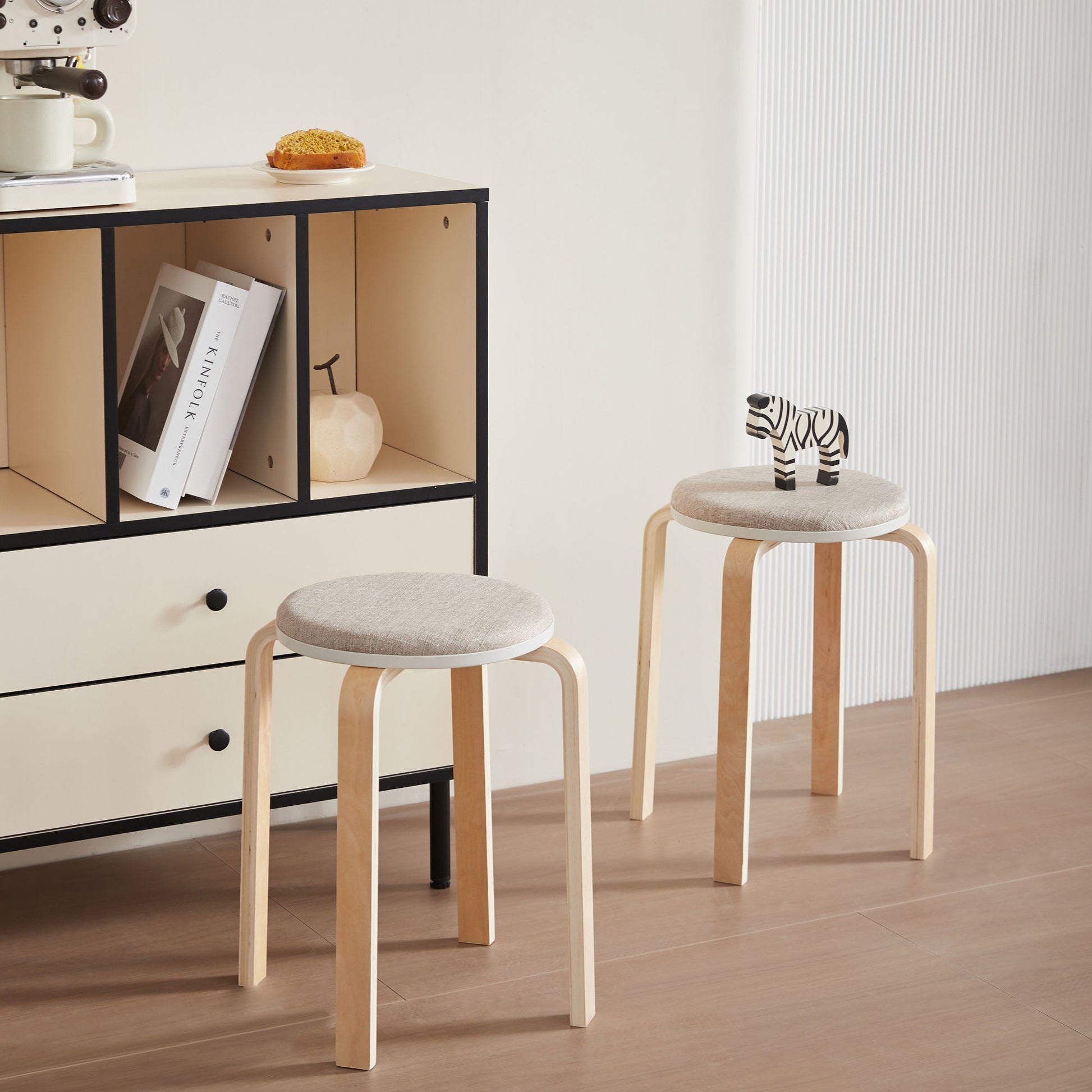 Stackable Bentwood Stools (Set of 4), Round Backless Chairs For Dining Room, Kitchen, Classroom - Light Gray