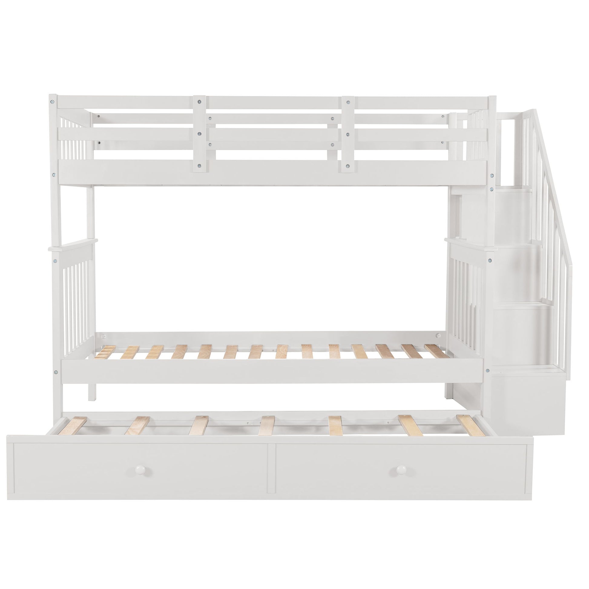 Twin Over Full Stairway Bunk Bed With Drawer, Storage And Guard Rail For Bedroom - White