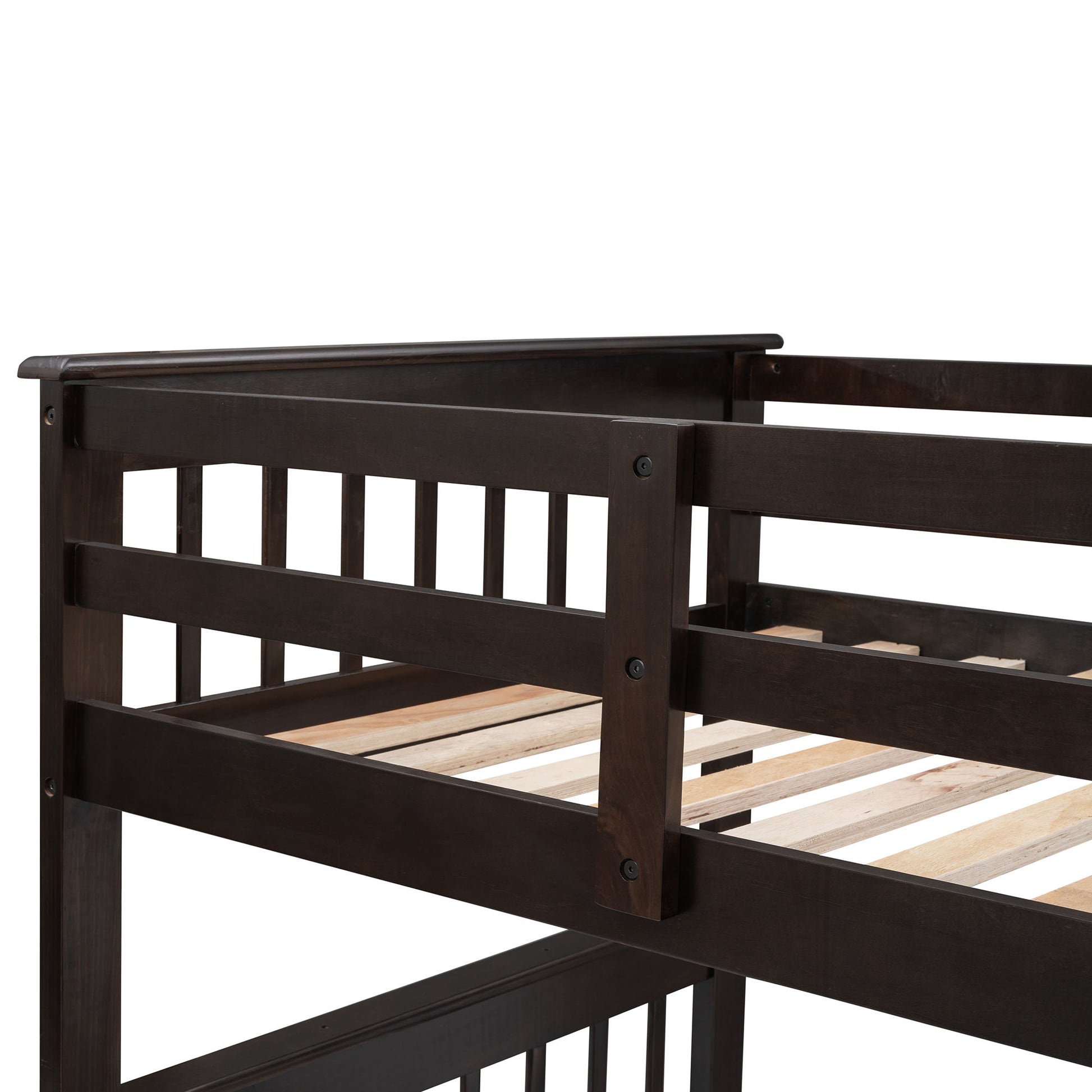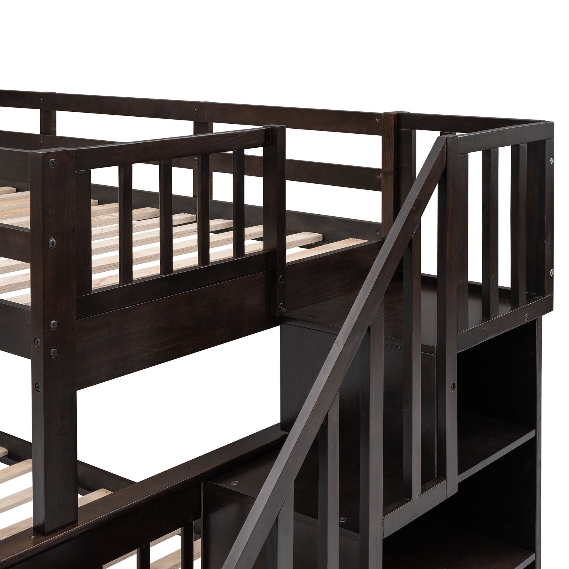 Twin Over Twin Stairway Bunk Bed With Storage And Guard Rail For Bedroom - Espresso