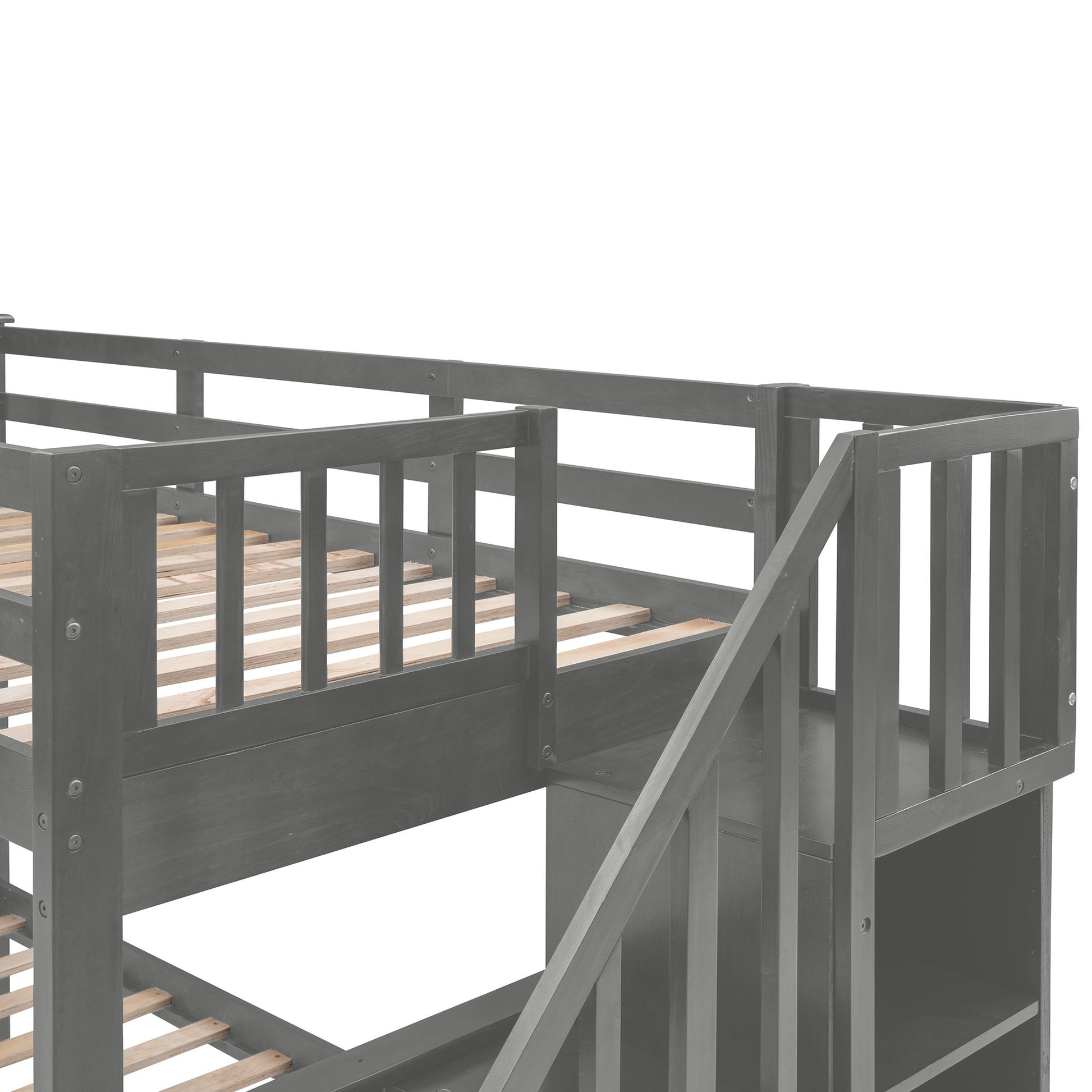 Stairway Twin Over Twin Bunk Bed With Storage And Guard Rail For Bedroom - Gray