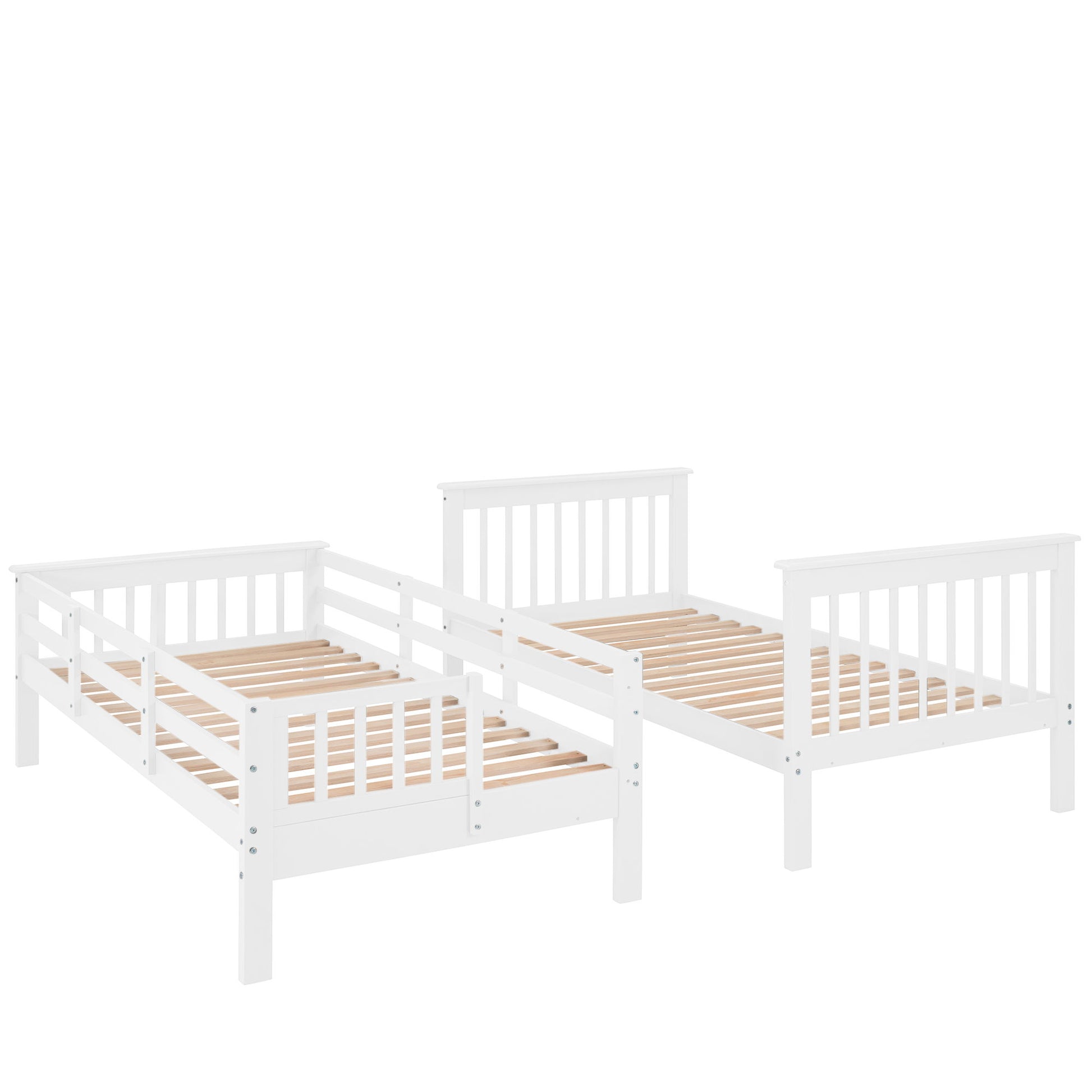 Stable and safety Upper bunk has a guardrail; the bottom bunk includes headboard, footboard, and handrail. Solid pine legs ensure top-notch security and durability for your little one.