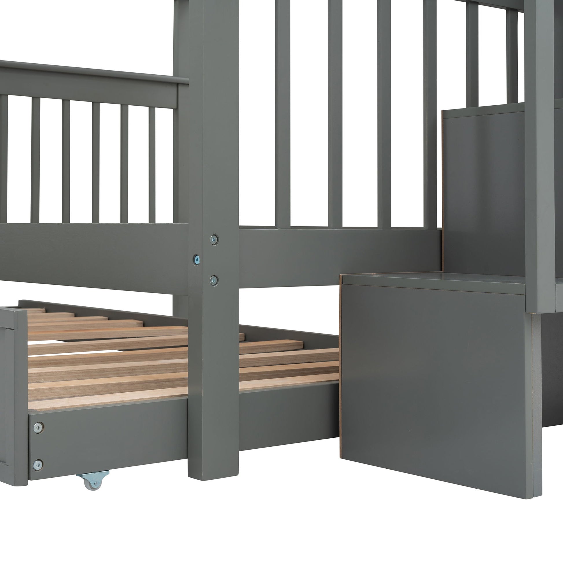 Twin Over Full Bunk Bed Stairway With Storage And Guard Rail For Bedroom - Gray