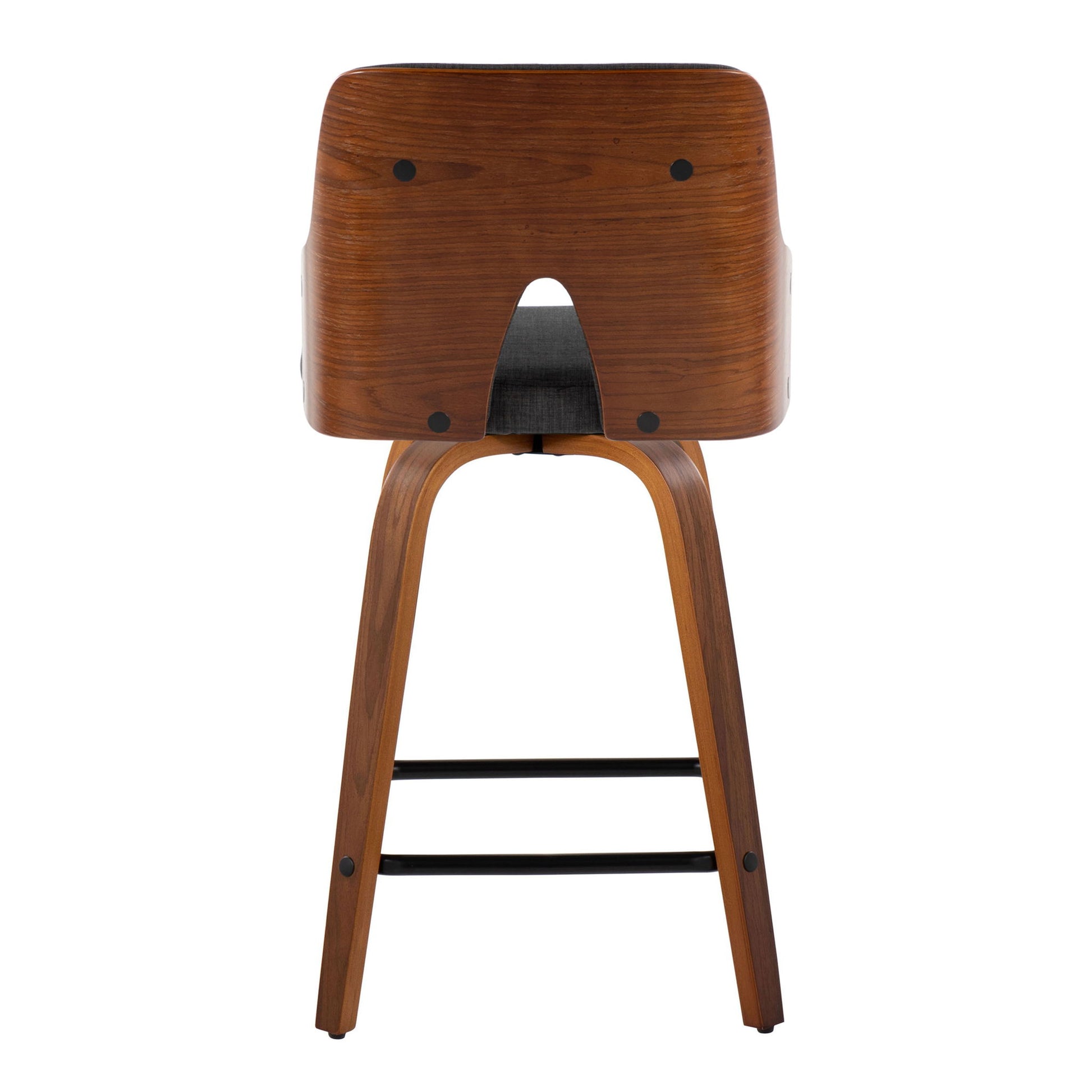 Stella - Mid-Century Modern Fixed Height Counter Stool With Swivel Square Footrest (Set of 2) - Walnut / Charcoal