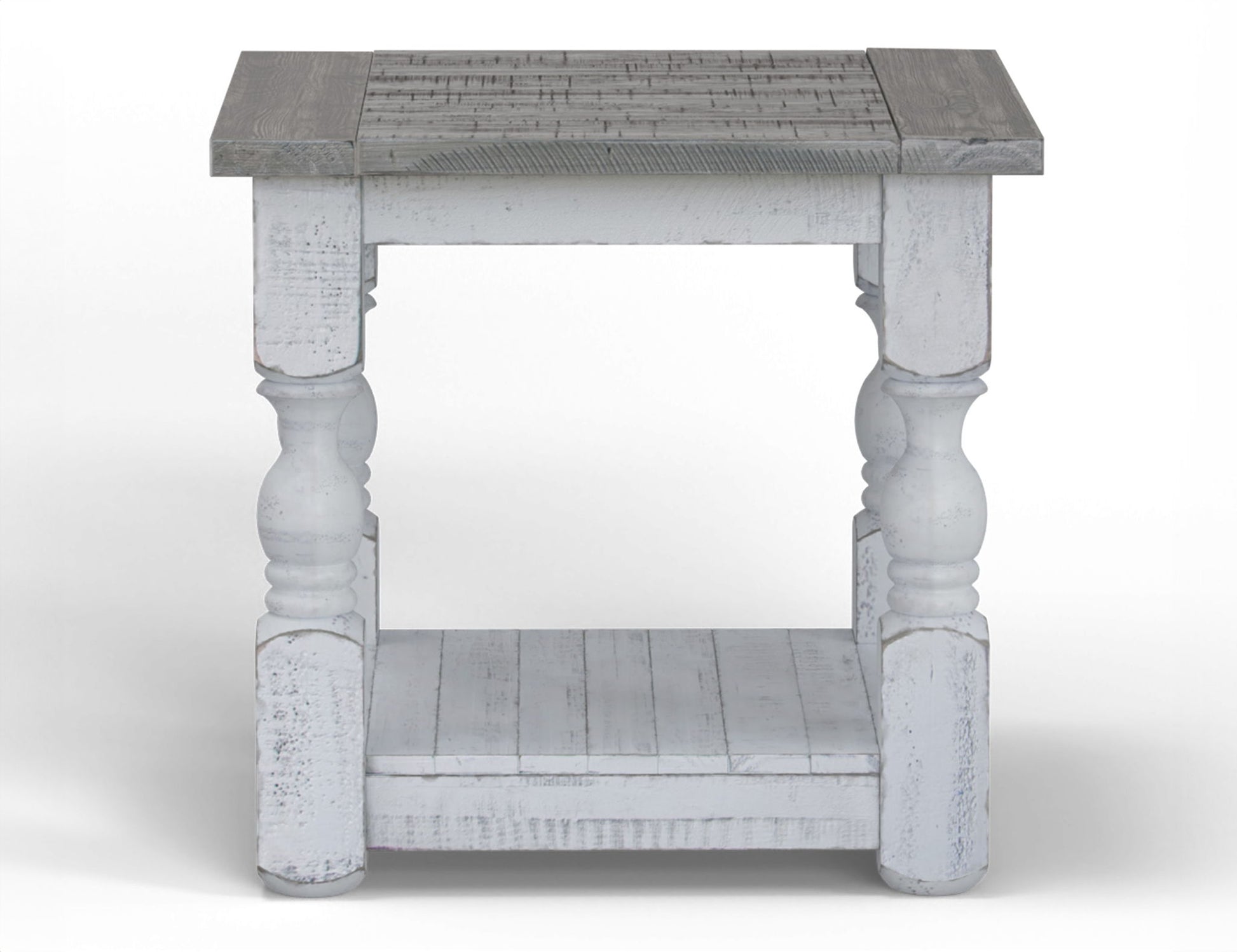 Stone - End Table - Antiqued Ivory / Weathered Gray
