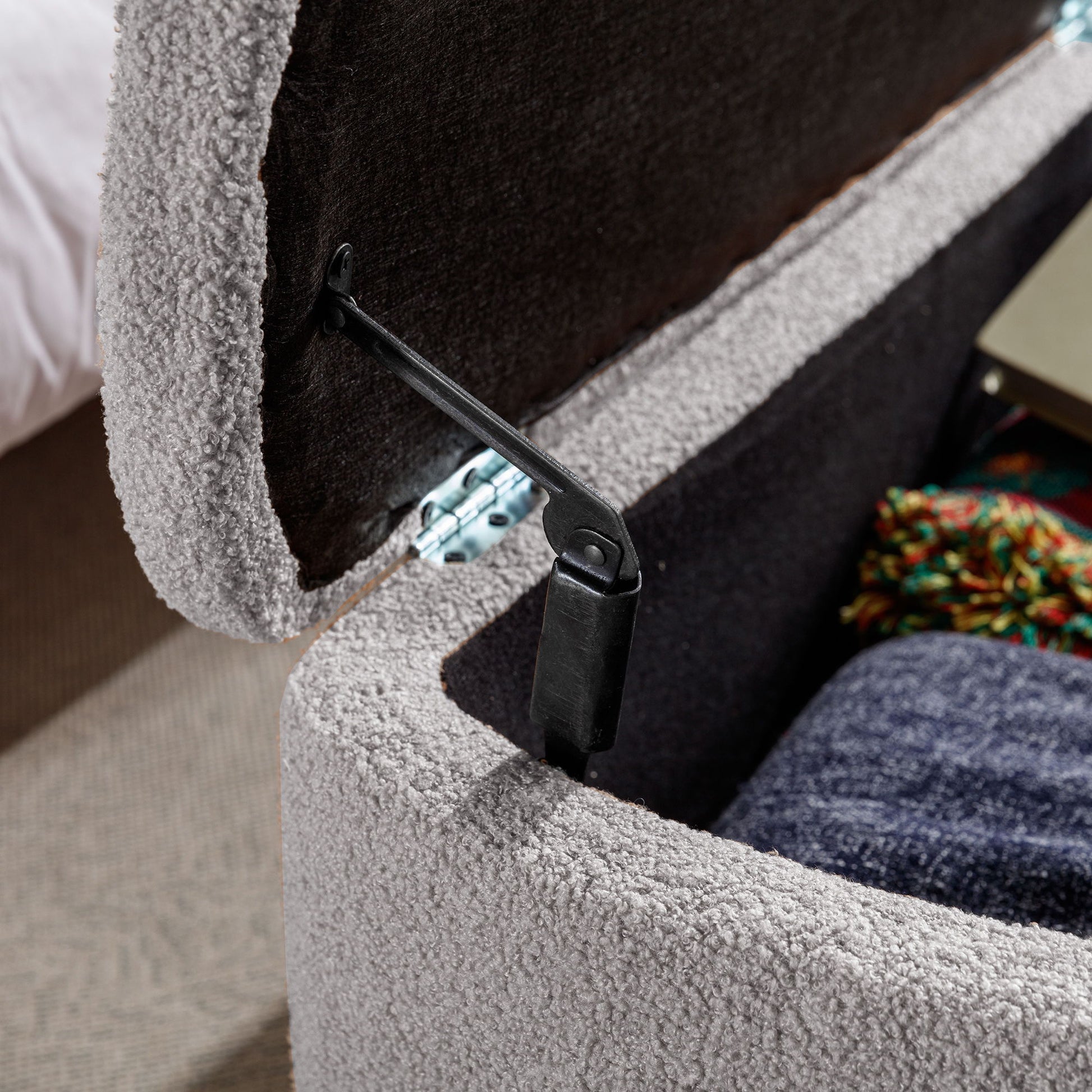 Storage Ottoman Bench For End Of Bed Gold Legs, Modern Gray Faux Fur Entryway Bench Upholstered Padded With Storage For Living Room Bedroom - Gray