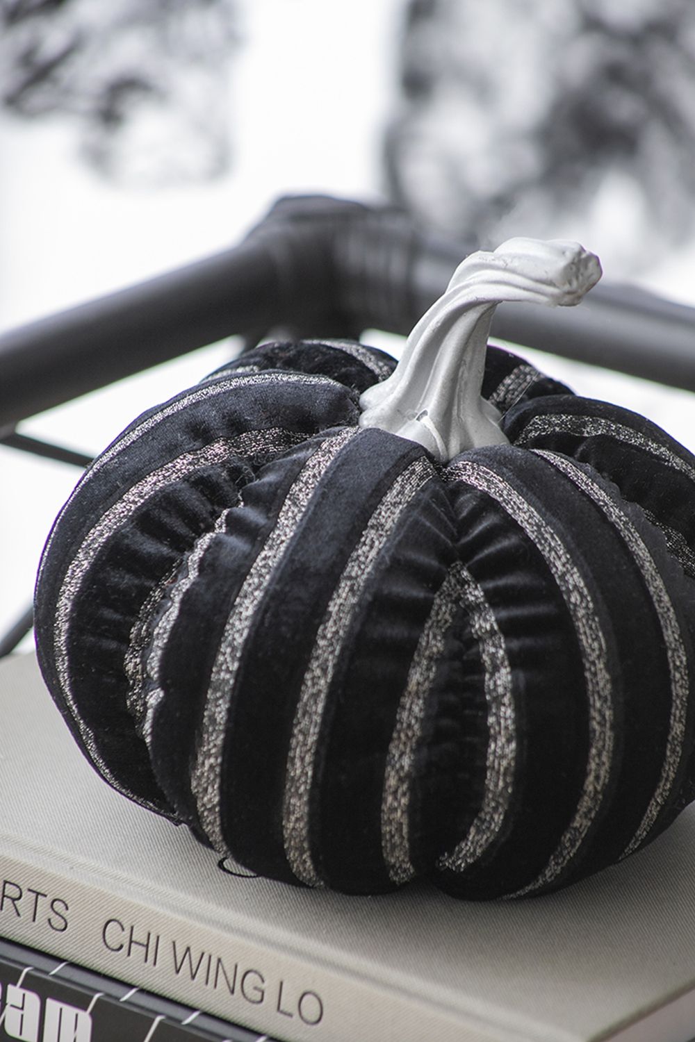 Stripe Pumpkin Decor, For Holiday Halloween Decoration - Black / White