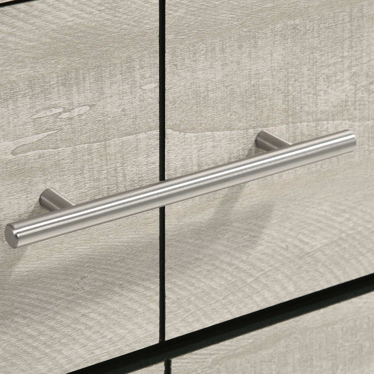 - Polished Nickel Handles: Provide refined contrast against the white washed veneer surfaces