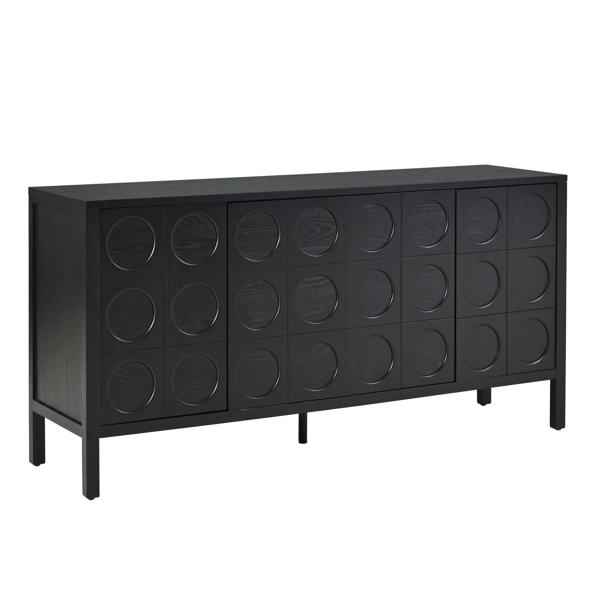 Stylish Storage Cabinet Sideboard With Unique Geometric Circle Door Design - Black
