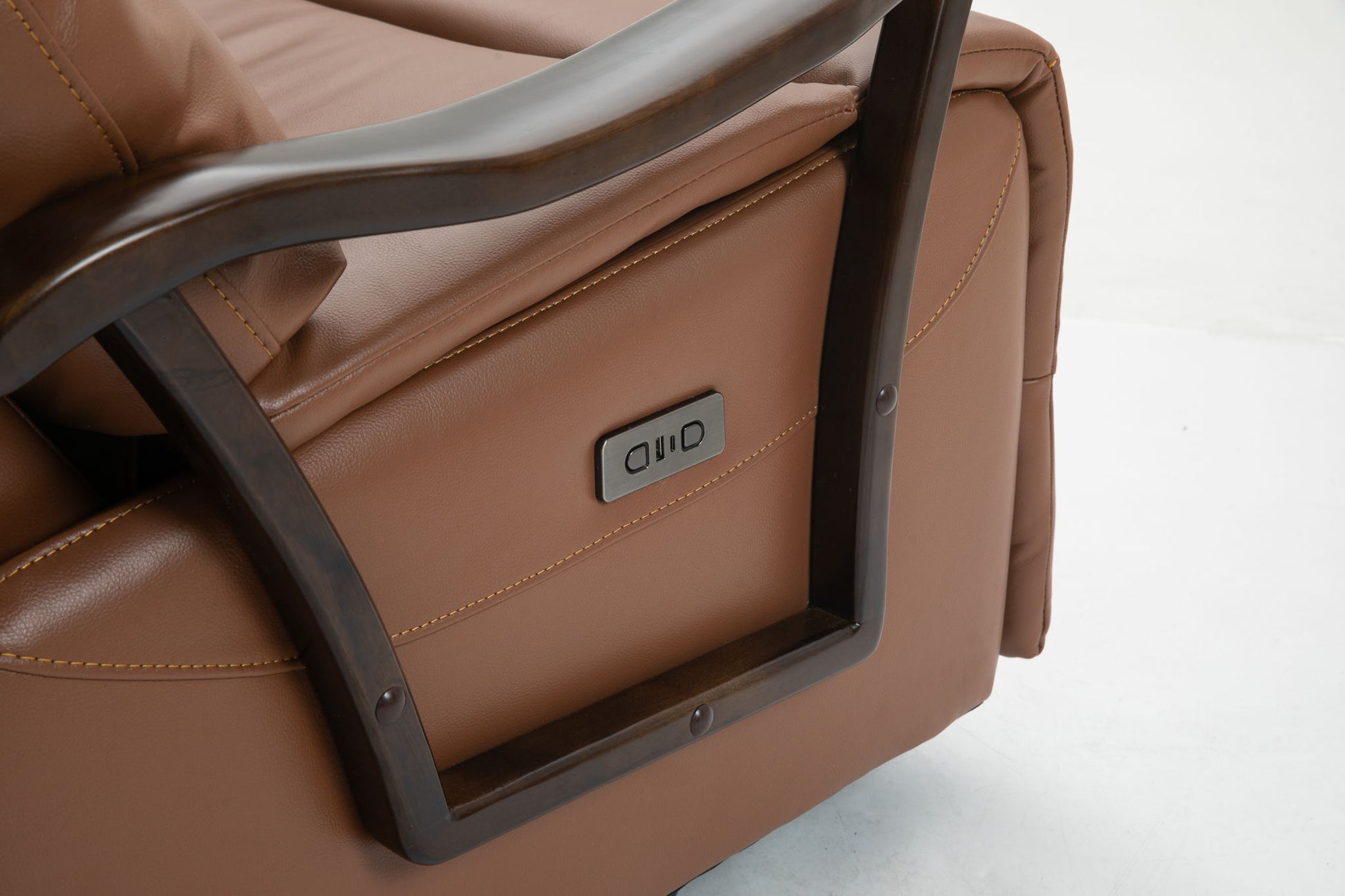 Swivel Rocker Recliner Power Glider Chair With Solid Wood Armrests, Extra Wide Reclining Sofa Chair Upholstered Living Room Single Sofa