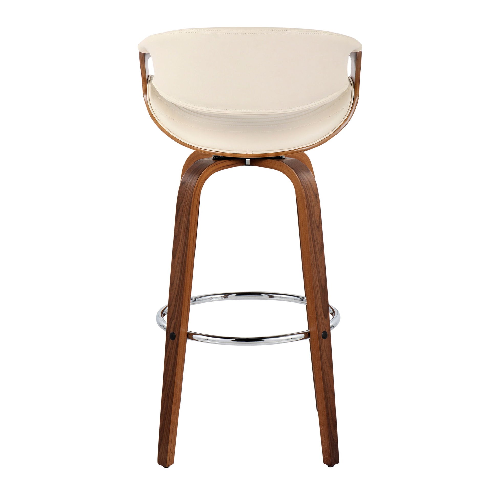Symphony - Mid-Century Modern Fixed Height Barstool With Swivel With Round Footrest (Set of 2) - Walnut / Cream