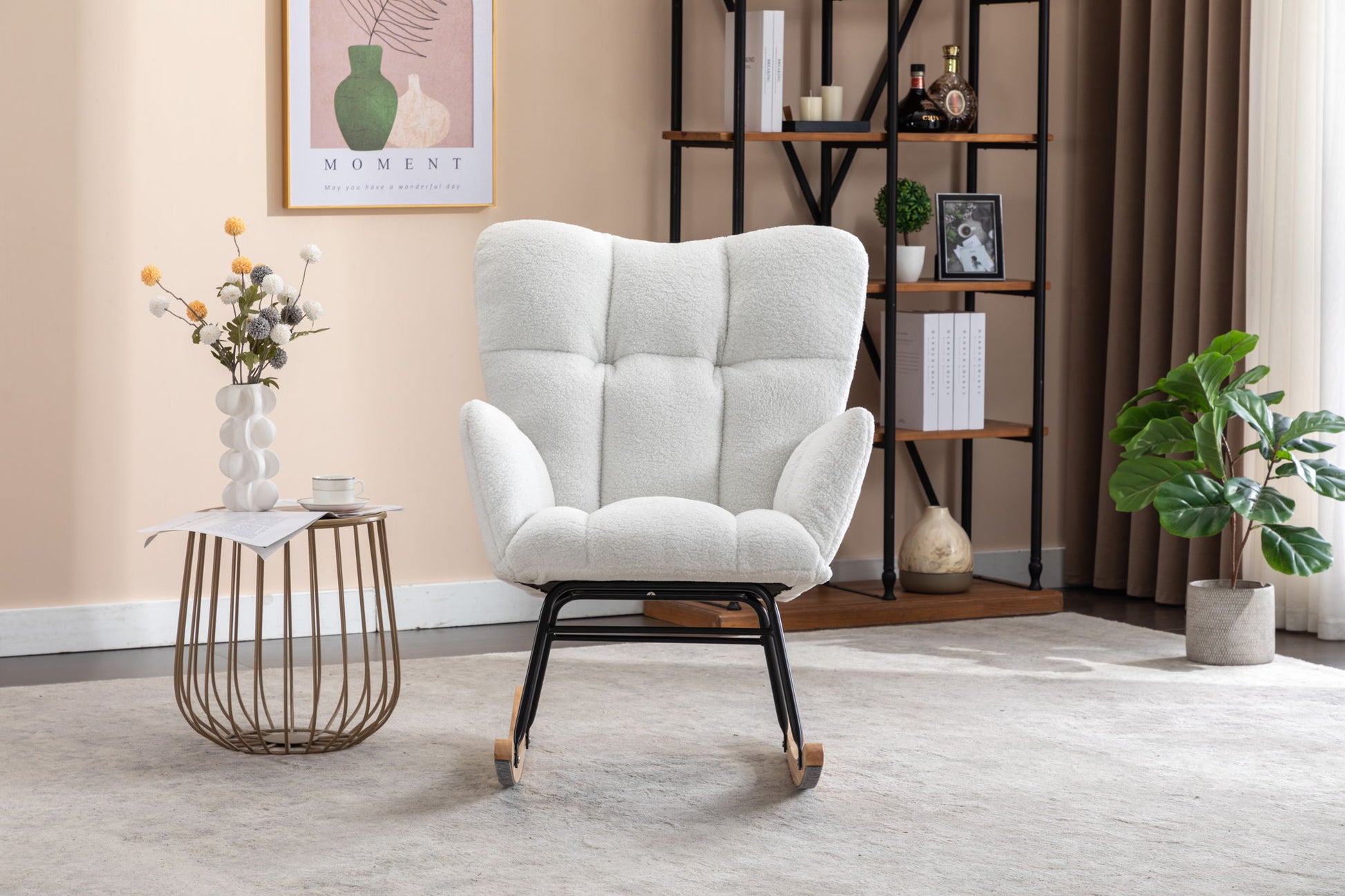 Teddy Fabric Rocking Gilder Nursery Chair For Living Room Indoor - Ivory