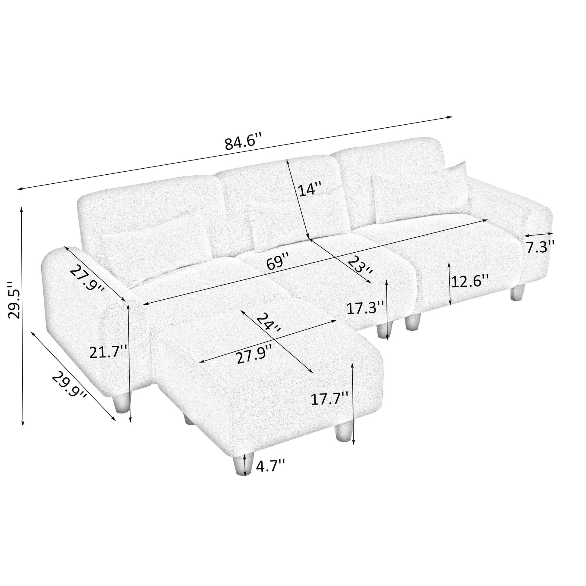 84.6"W x 30.0"D x 29.5"H - 120.0 lb