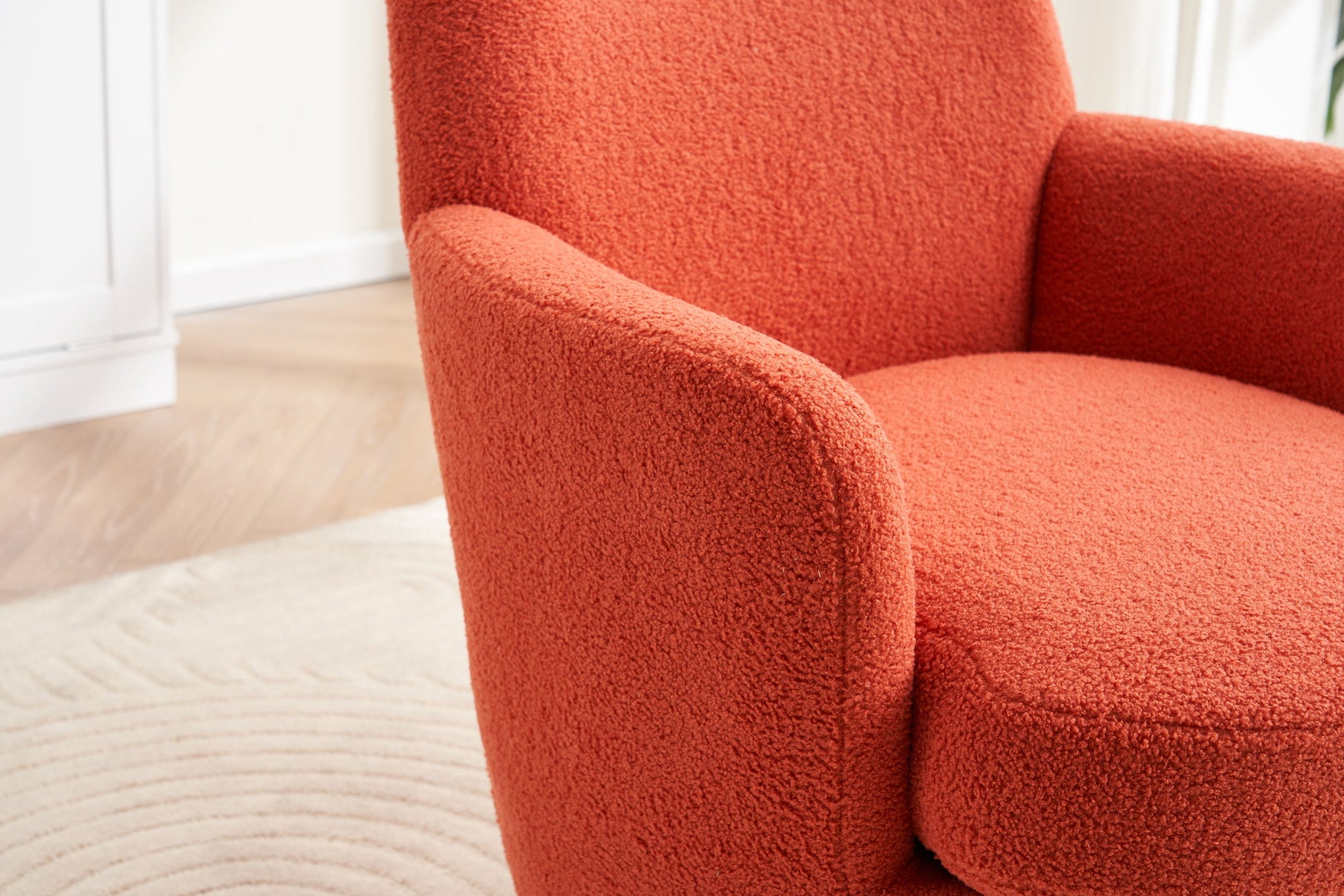 Teddy Swivel Barrel Chair, Swivel Accent Chairs Armchair For Living Room, Reading Chairs For Bedroom Comfy, Round Barrel Chairs With Gold Stainless Steel Base - Orange