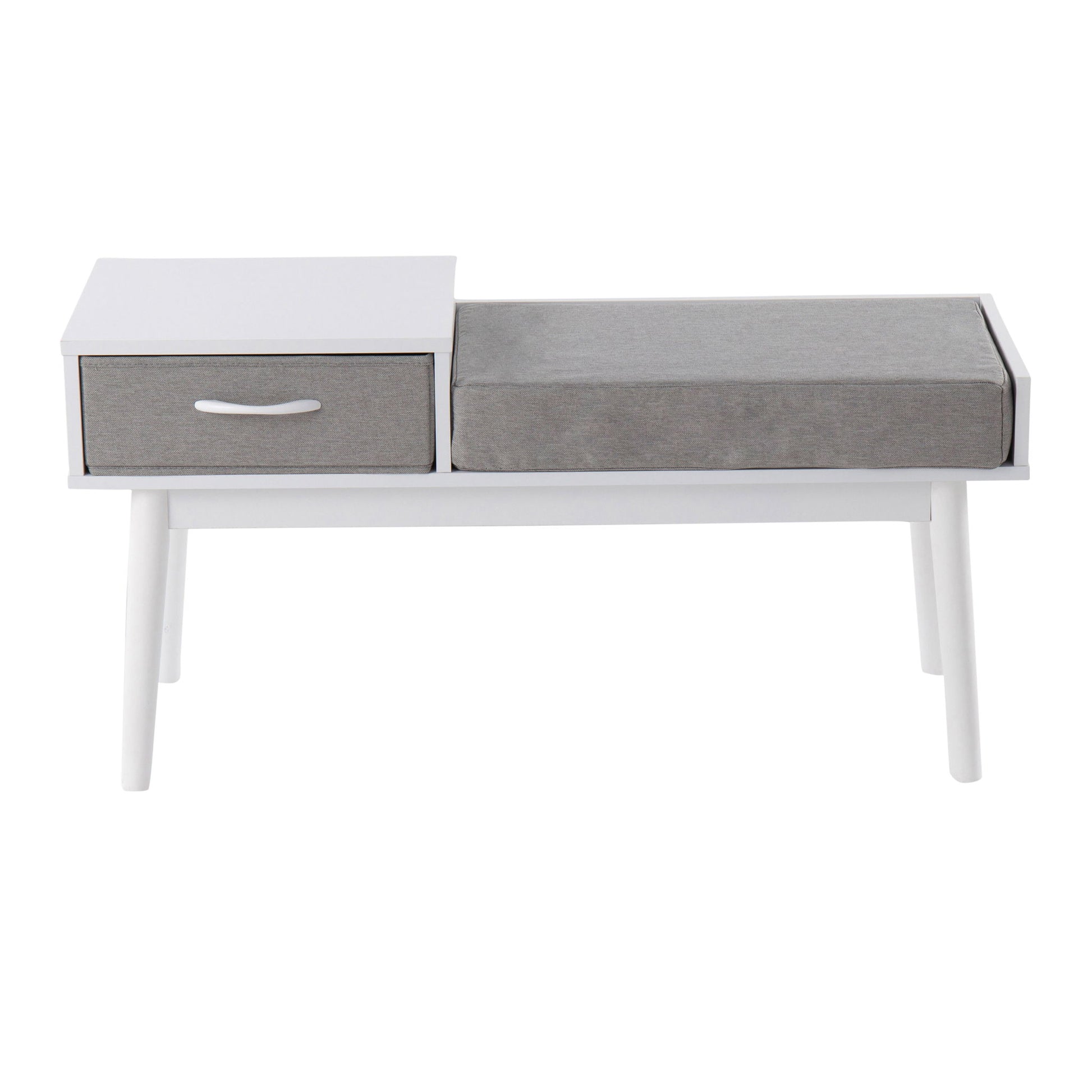 Telephone Contemporary Bench With Pull Out Drawer - White / Gray
