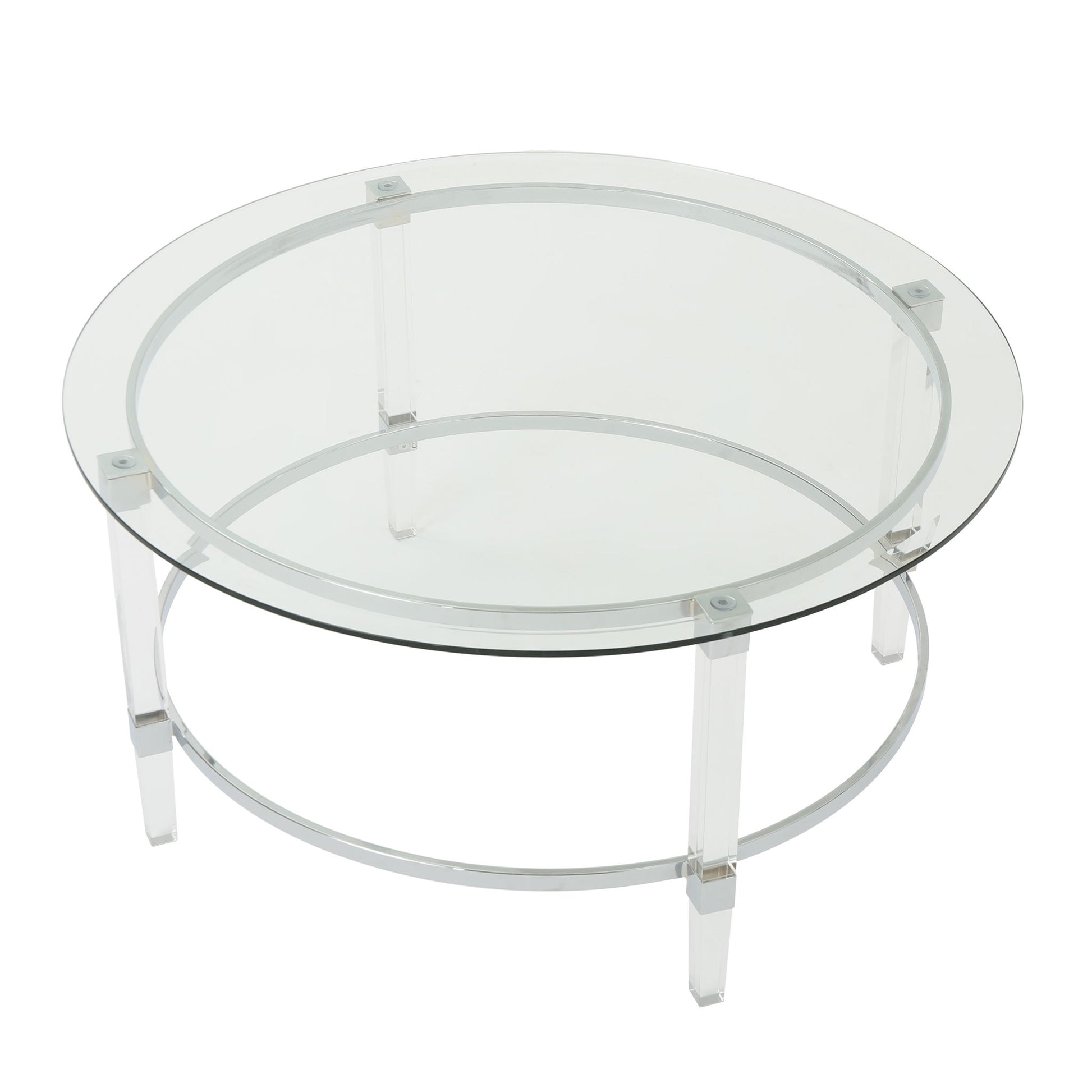 Tempered Glass Round Coffee Table With Four Legs - Clear