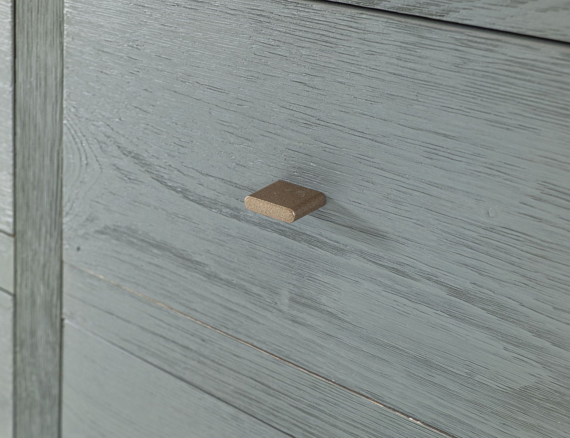 - The metal base and custom knob pulls are powder-coated with a gold finish, enhancing their durability and resistance to corrosion.