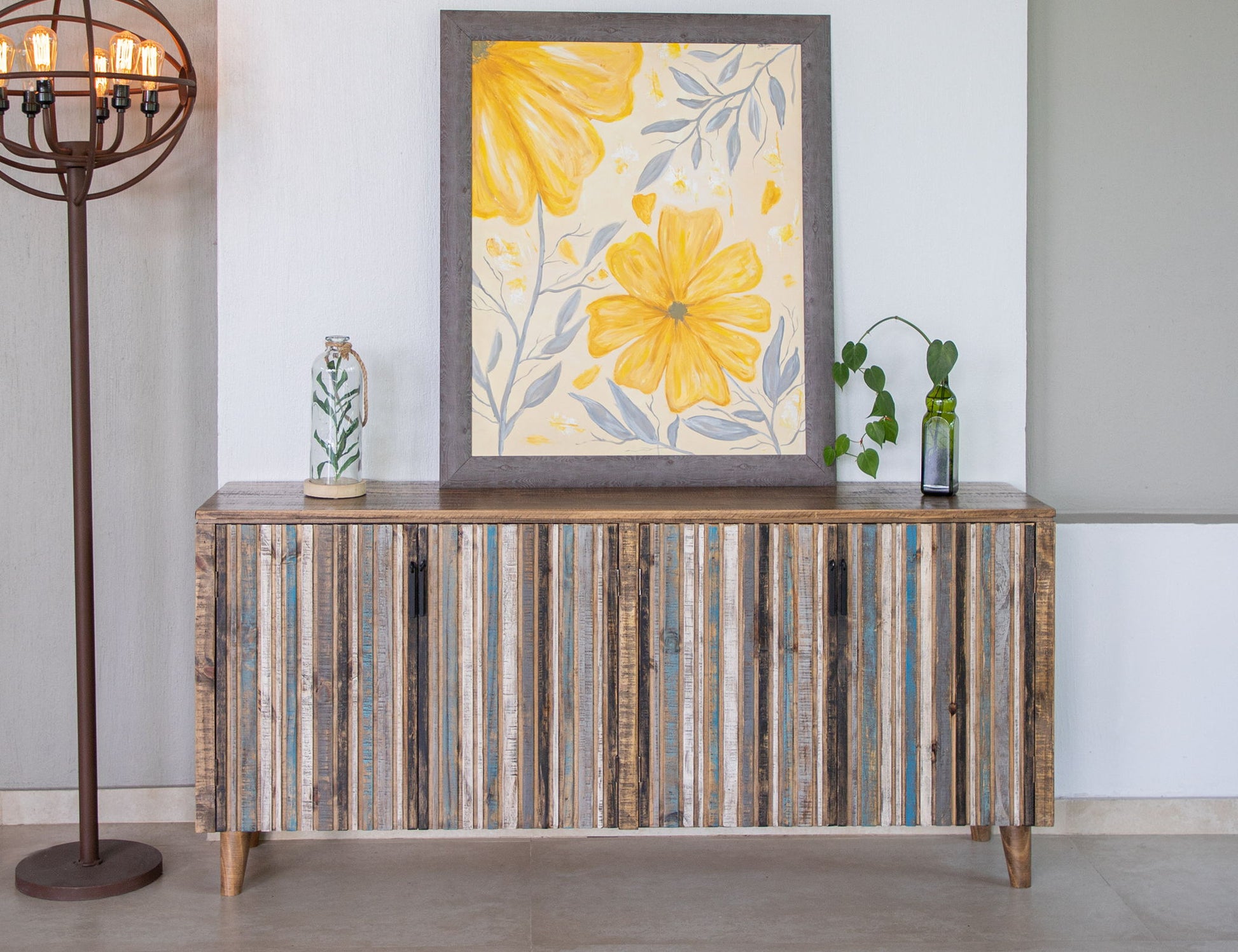Tiza - 4 Doors Console - Peanut Brown / Blue