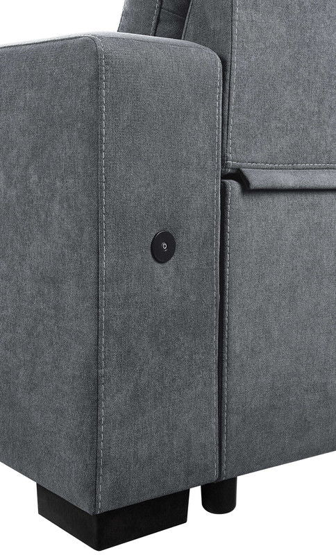 Toby 95"W Gray Woven Fabric Reversible Sleeper Sectional Sofa with Storage Chaise Cup Holder Charging Ports and Pockets