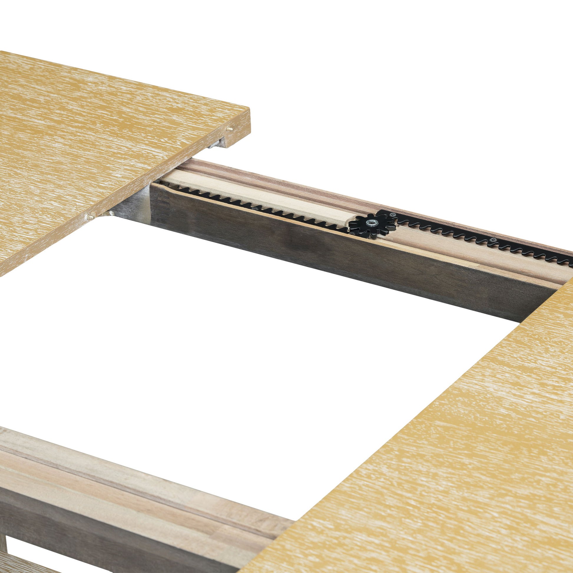 Topmax - 6 Piece Farmhouse Extendable Dining Table Set Trestle Kitchen Table Set With Removable Leaf And Upholstered Dining Chair And Bench For Dining Room