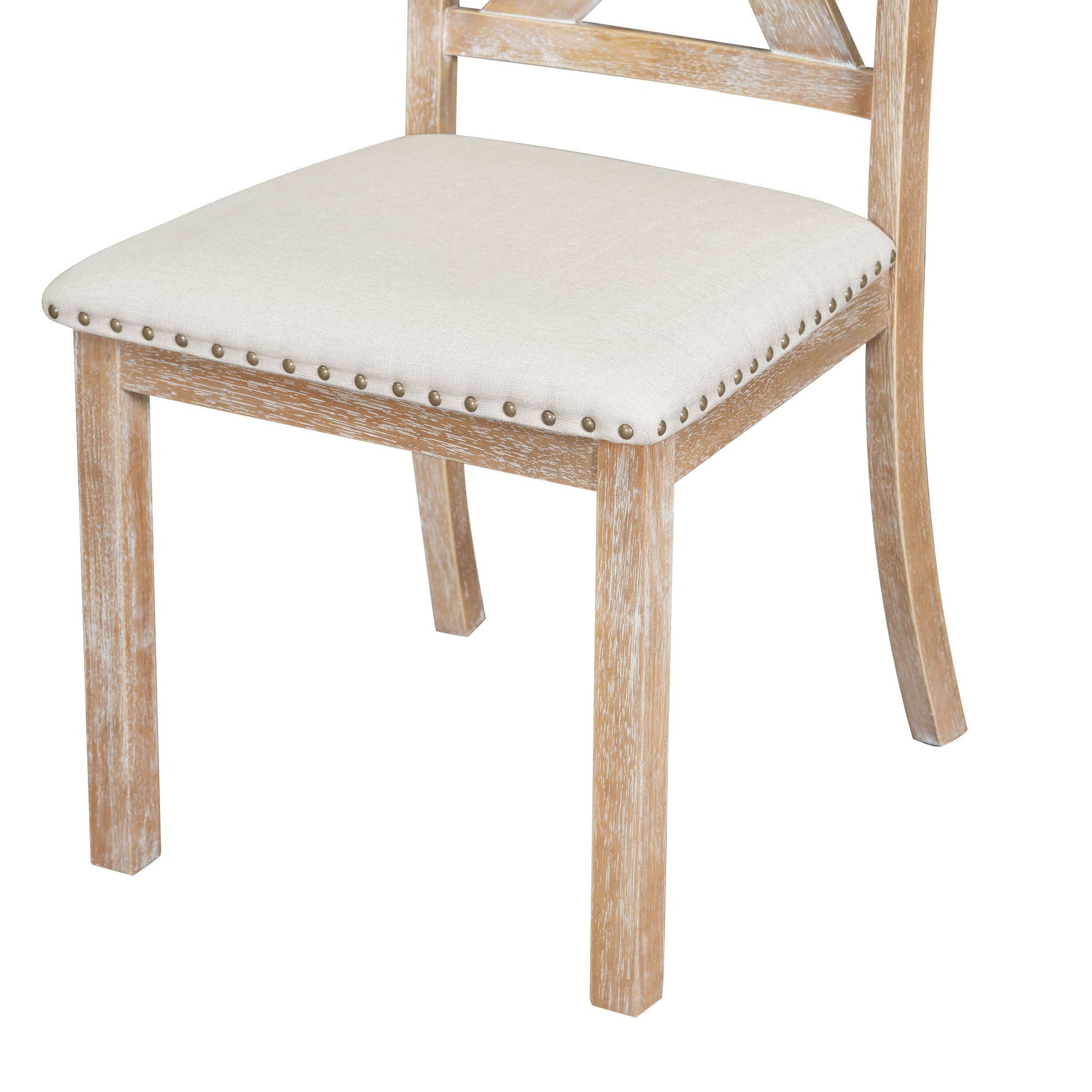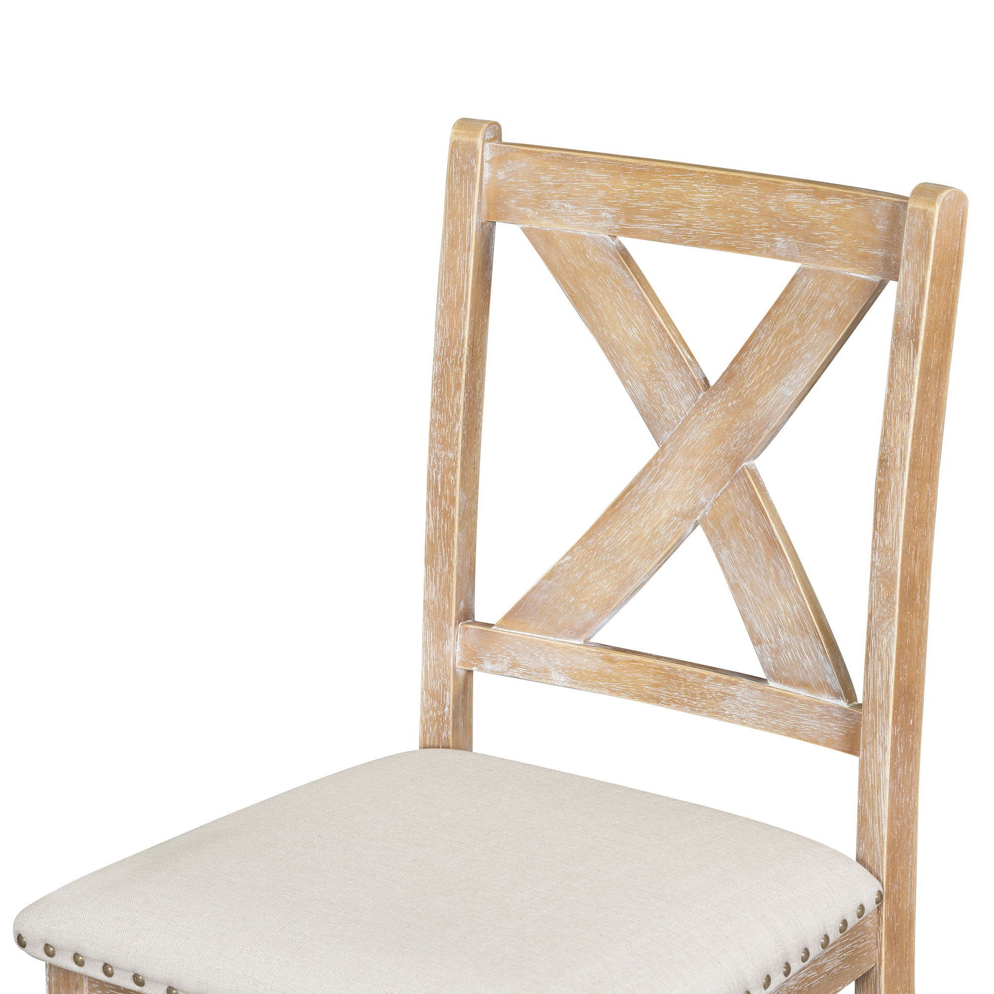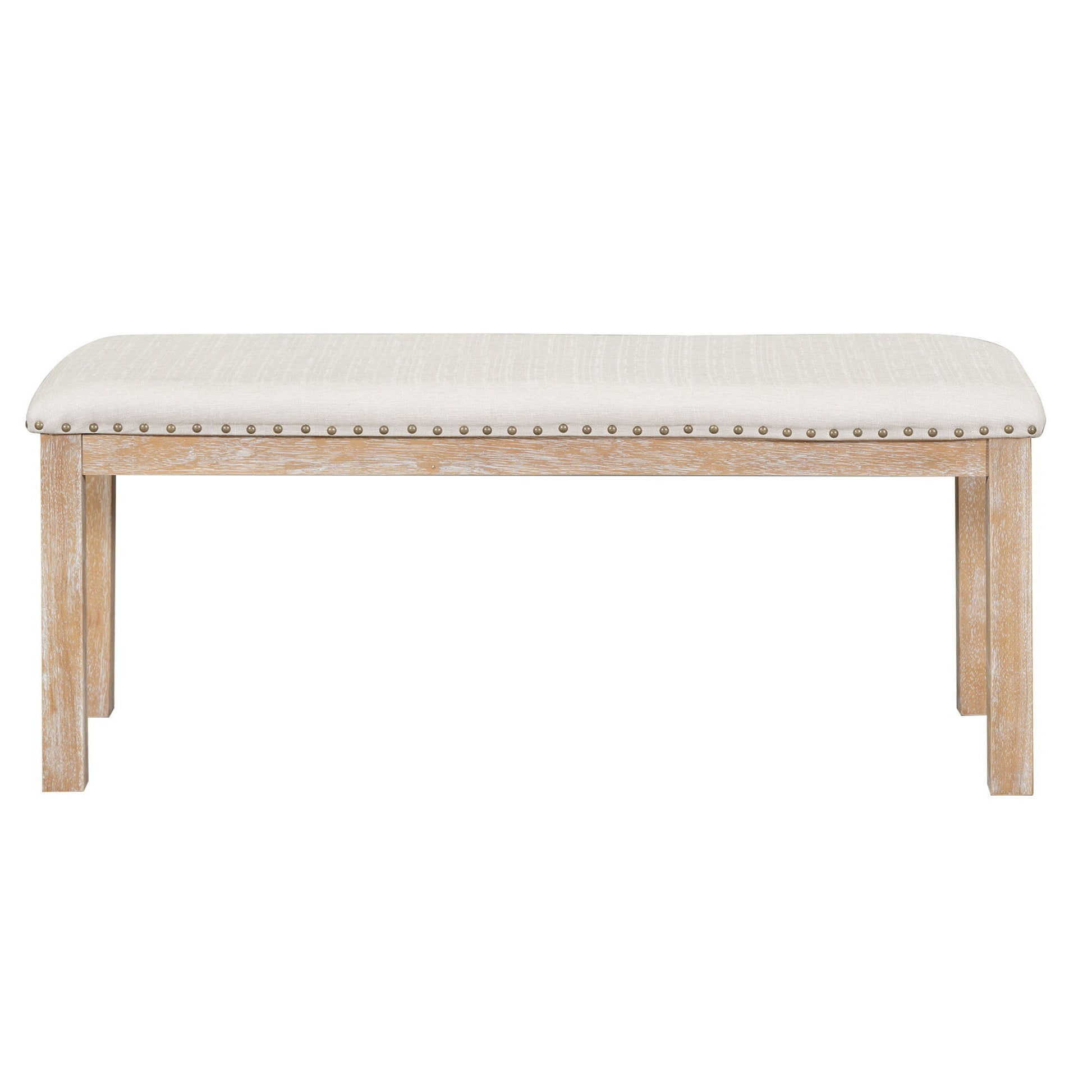 Topmax - 6 Piece Farmhouse Extendable Dining Table With Footrest, 4 Upholstered Dining Chairs And Dining Bench, Two 11" Removable Leaf