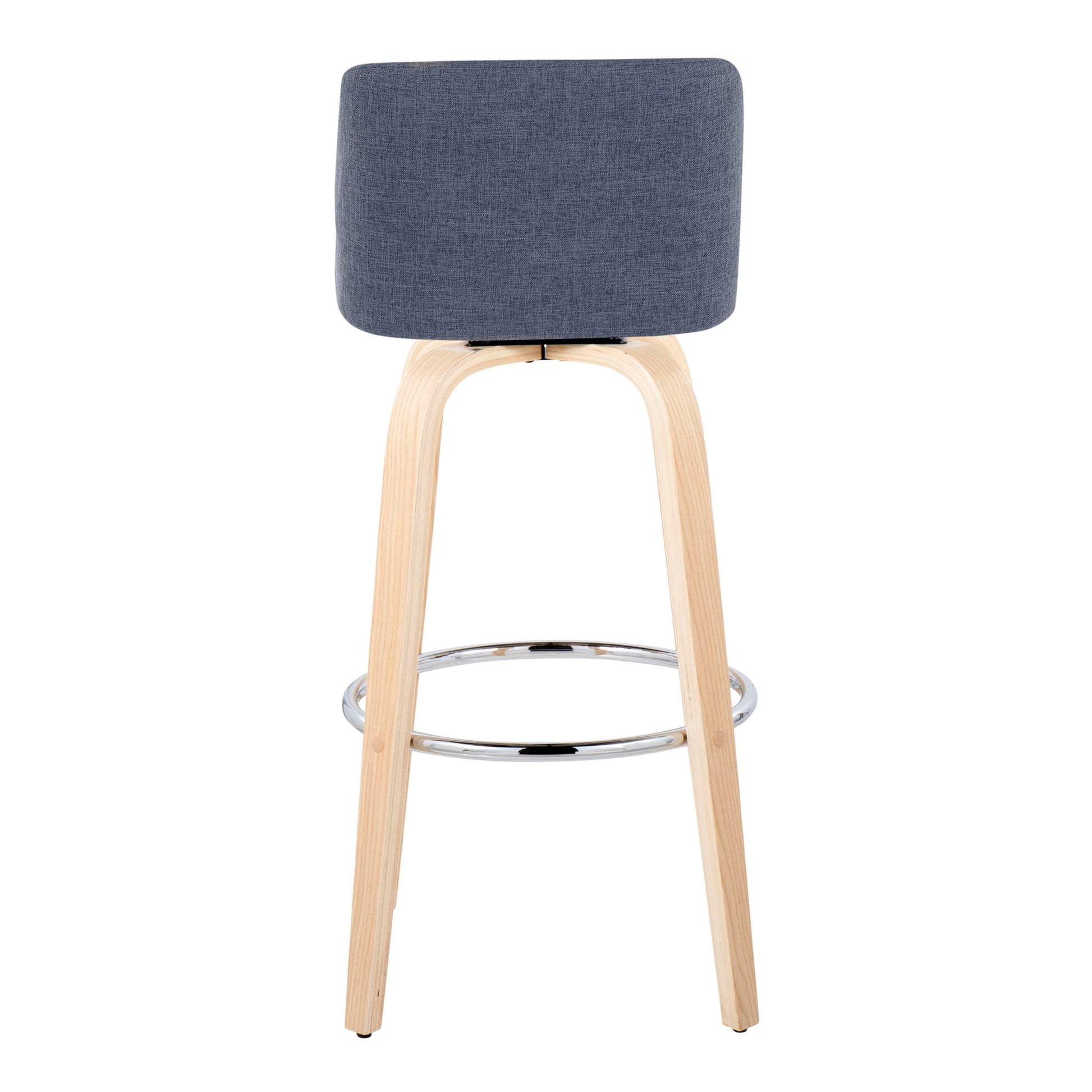 Toriano - Contemporary Fixed Height Barstool With Swivel With Round Footrest (Set of 2) - Natural / Blue