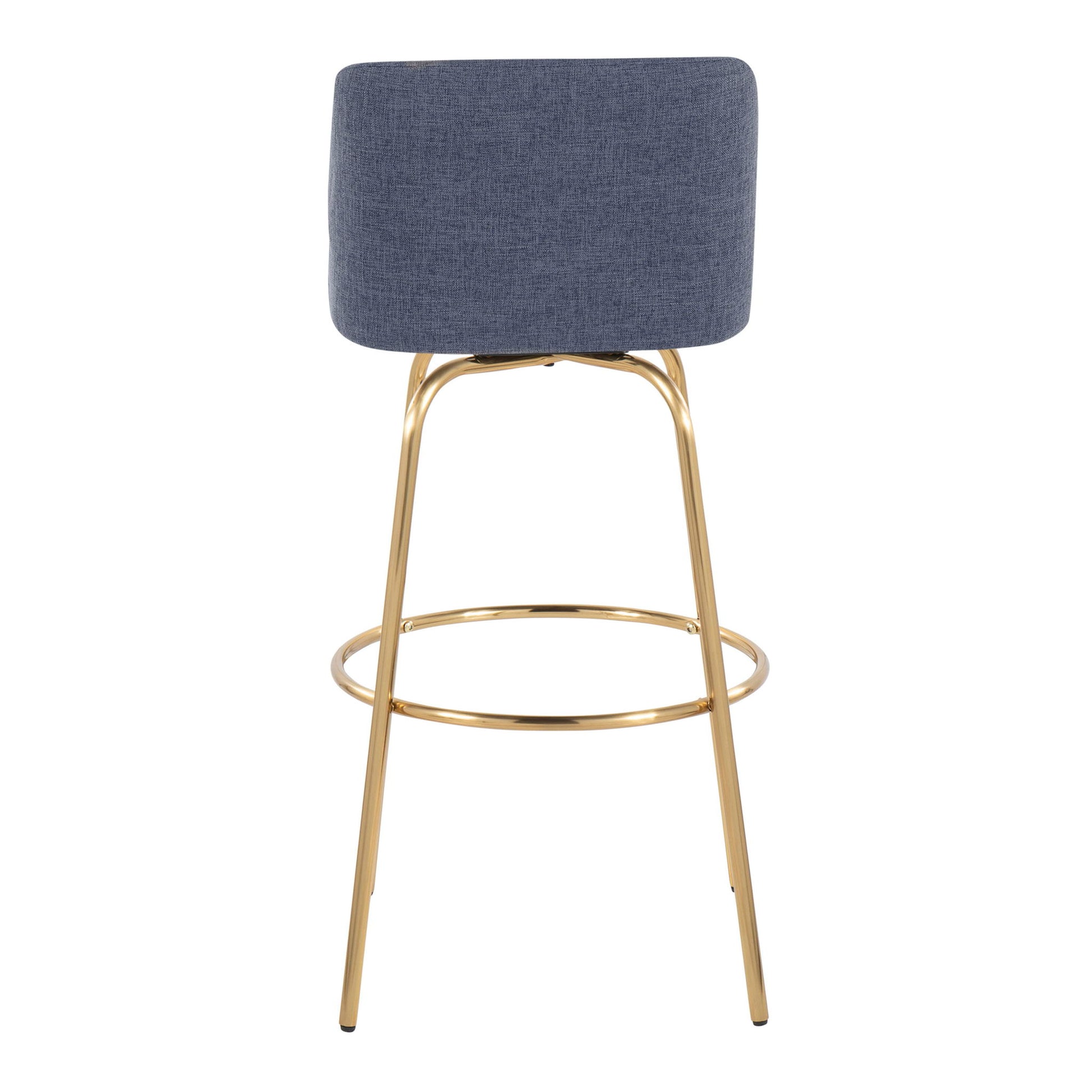 Toriano - Contemporary Fixed Height Barstool With Swivel With Round Footrest (Set of 2) - Blue / Gold