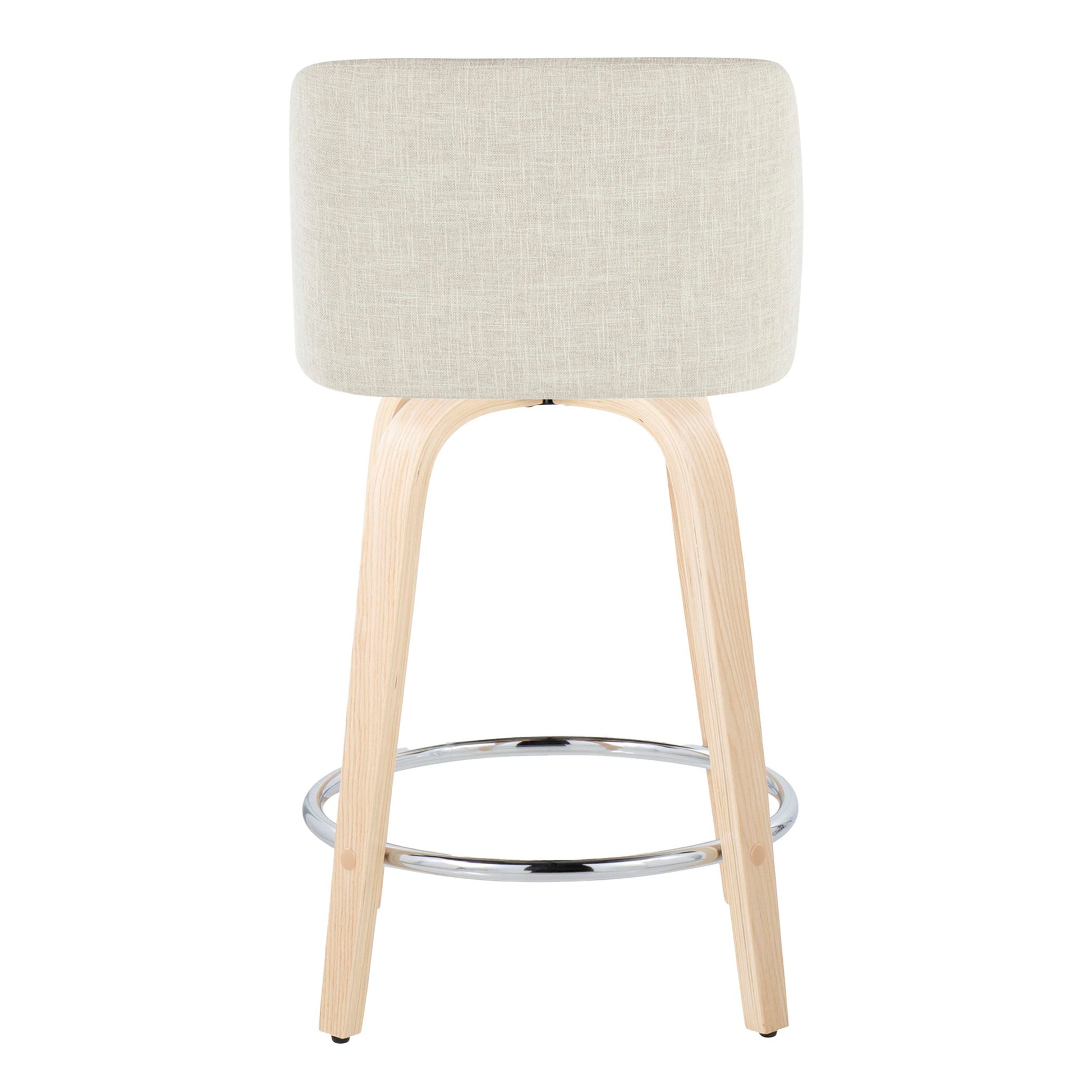 Toriano - Contemporary Fixed Height Counter Stool Swivel With Round Footrest (Set of 2) - Natural / Cream